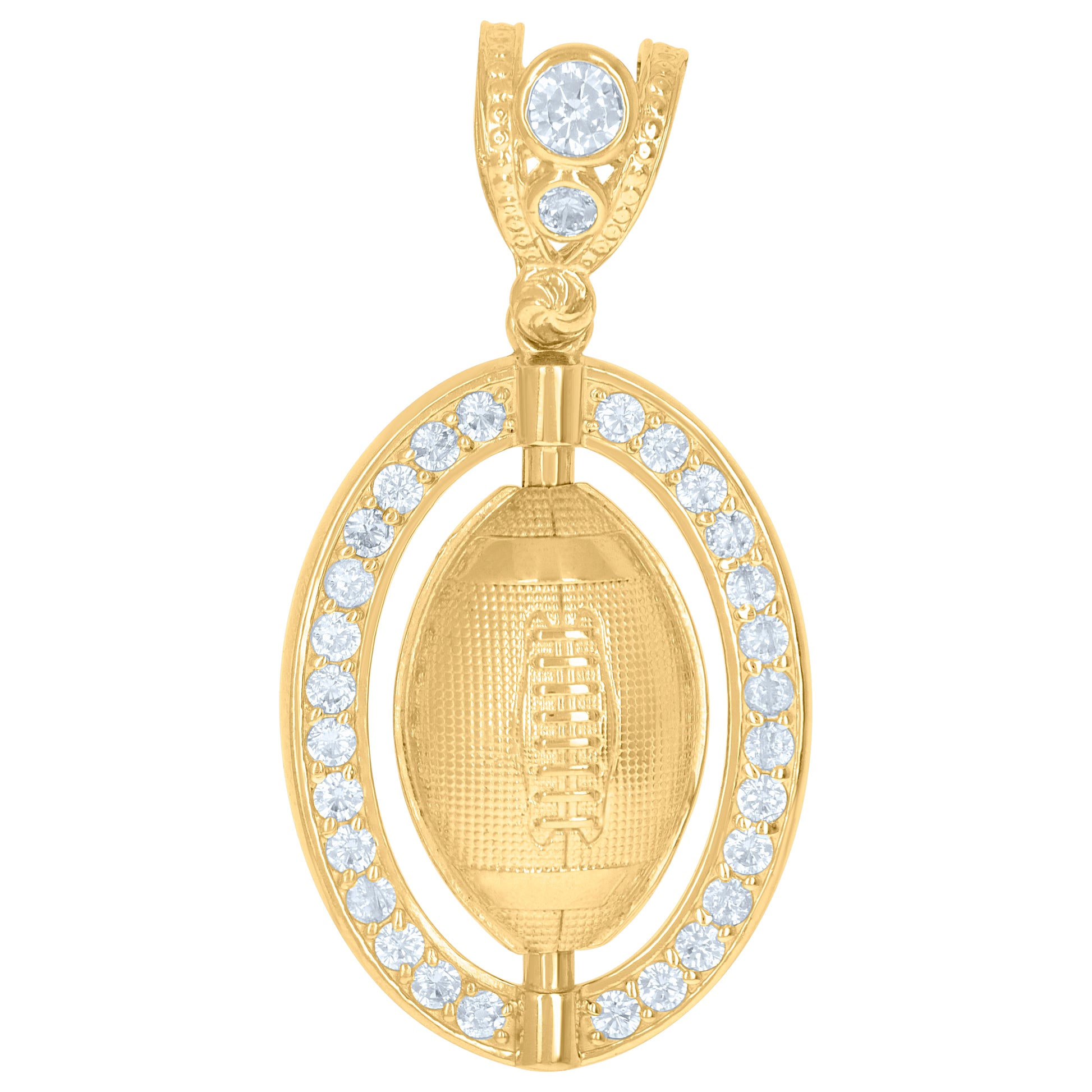 10kt Yellow Gold Mens Cubic-Zirconia Football Rugby Sports Charm Pendant