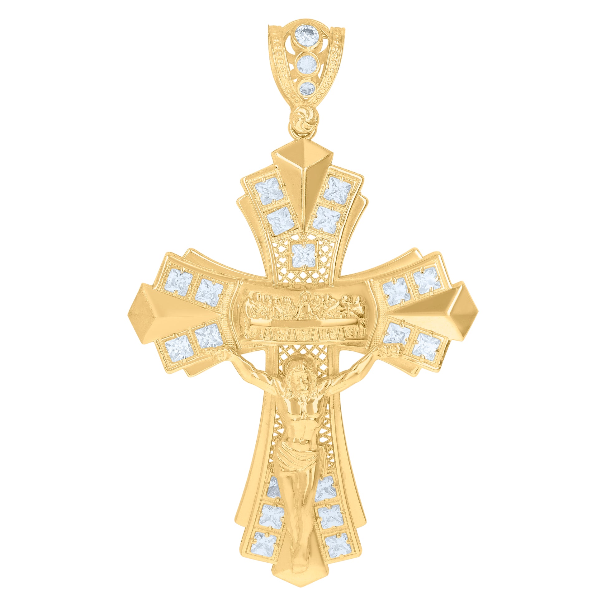 10kt Yellow Gold Mens Cubic-Zirconia Crucifix Religious Charm Pendant