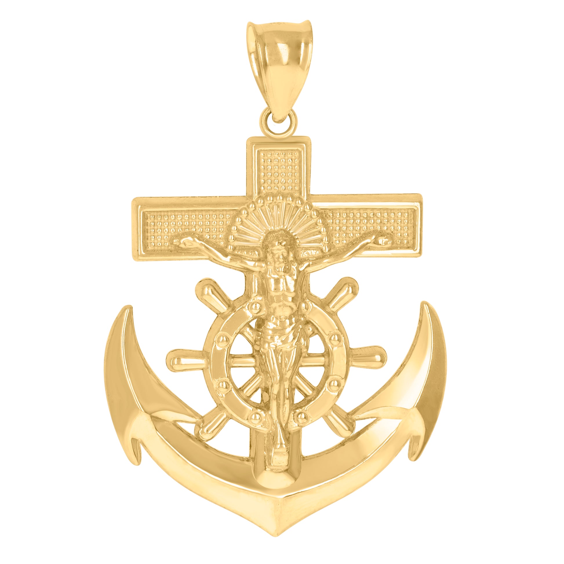 10kt Yellow Gold Mens Crucifix Anchor Religious Charm Pendant