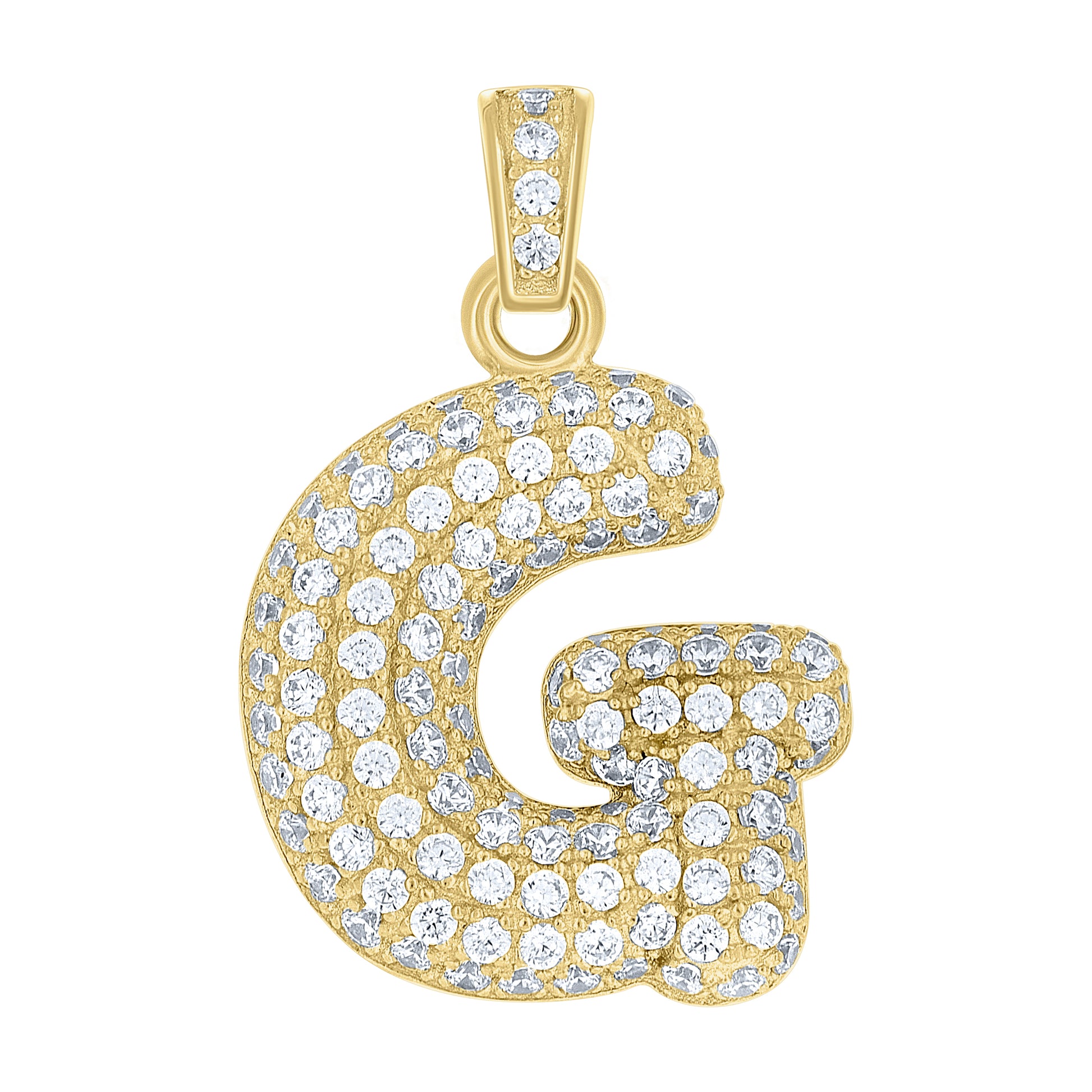 10kt Yellow Gold Unisex Cubic Zirconia Bubble Initial Letter G Charm Pendant