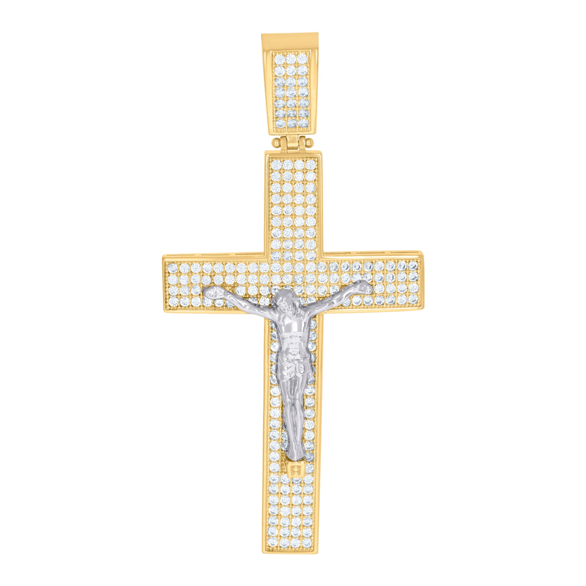 10kt Two-Tone Gold Mens Cubic-Zirconia Cross Crucifix Religious Charm Pendant
