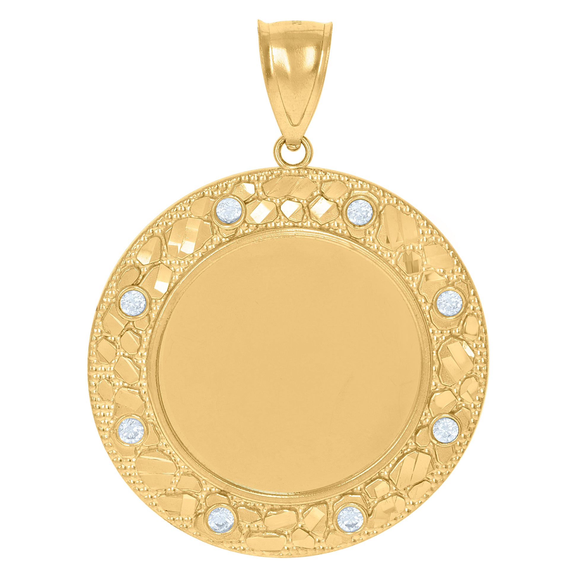 10kt Yellow Gold Mens Cubic-Zirconia Medallion Photo Frame Charm Pendant