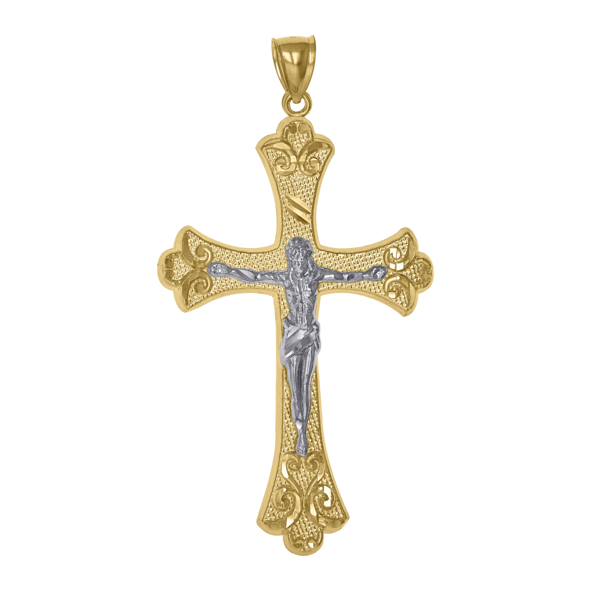 10kt Two-Tone Gold Mens Crucifix Religious Charm Pendant