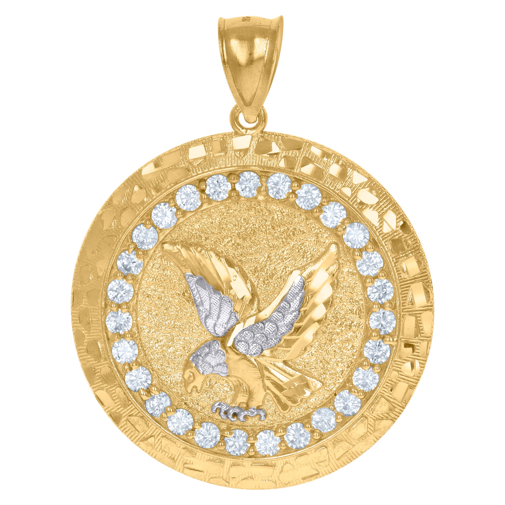 10kt Two-Tone Gold Mens Cubic-Zirconia Medallion Bird Eagle Wildlife Charm Pendant