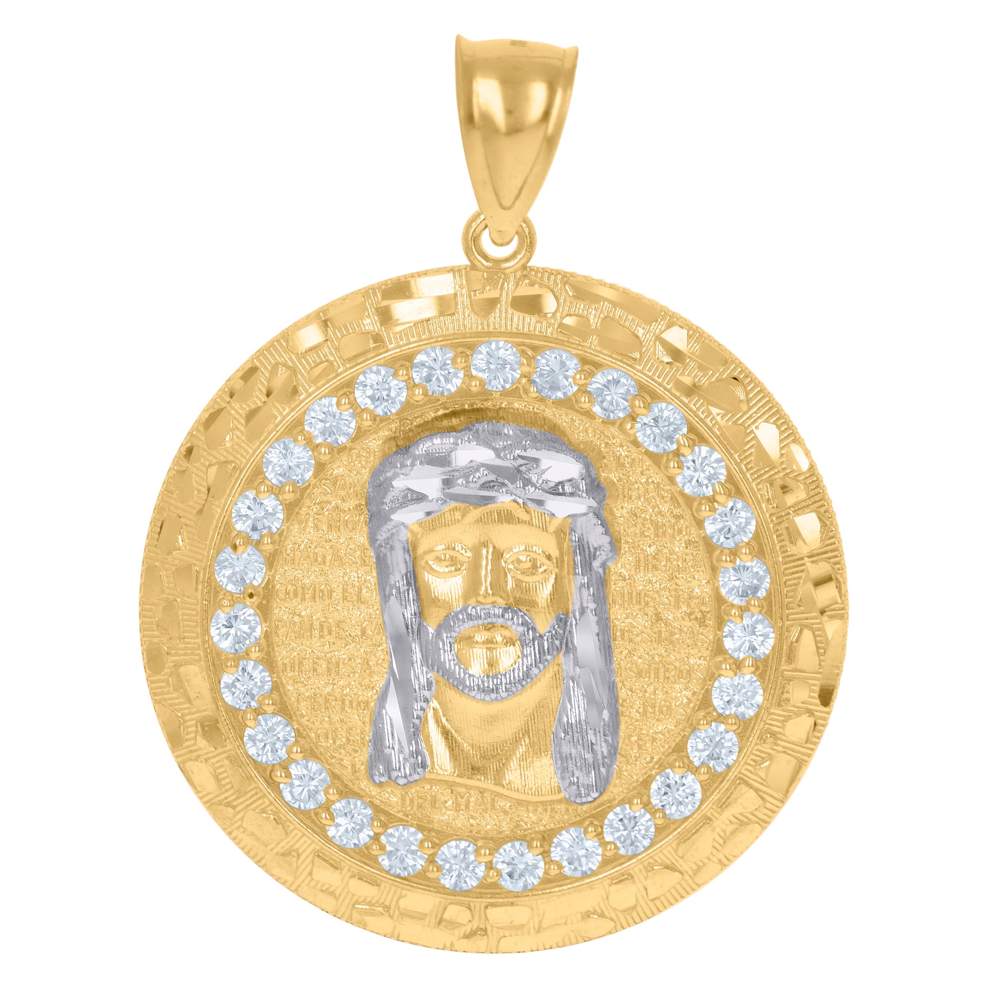 10kt Two-Tone Gold Mens Cubic-Zirconia Medallion Jesus Religious Charm Pendant