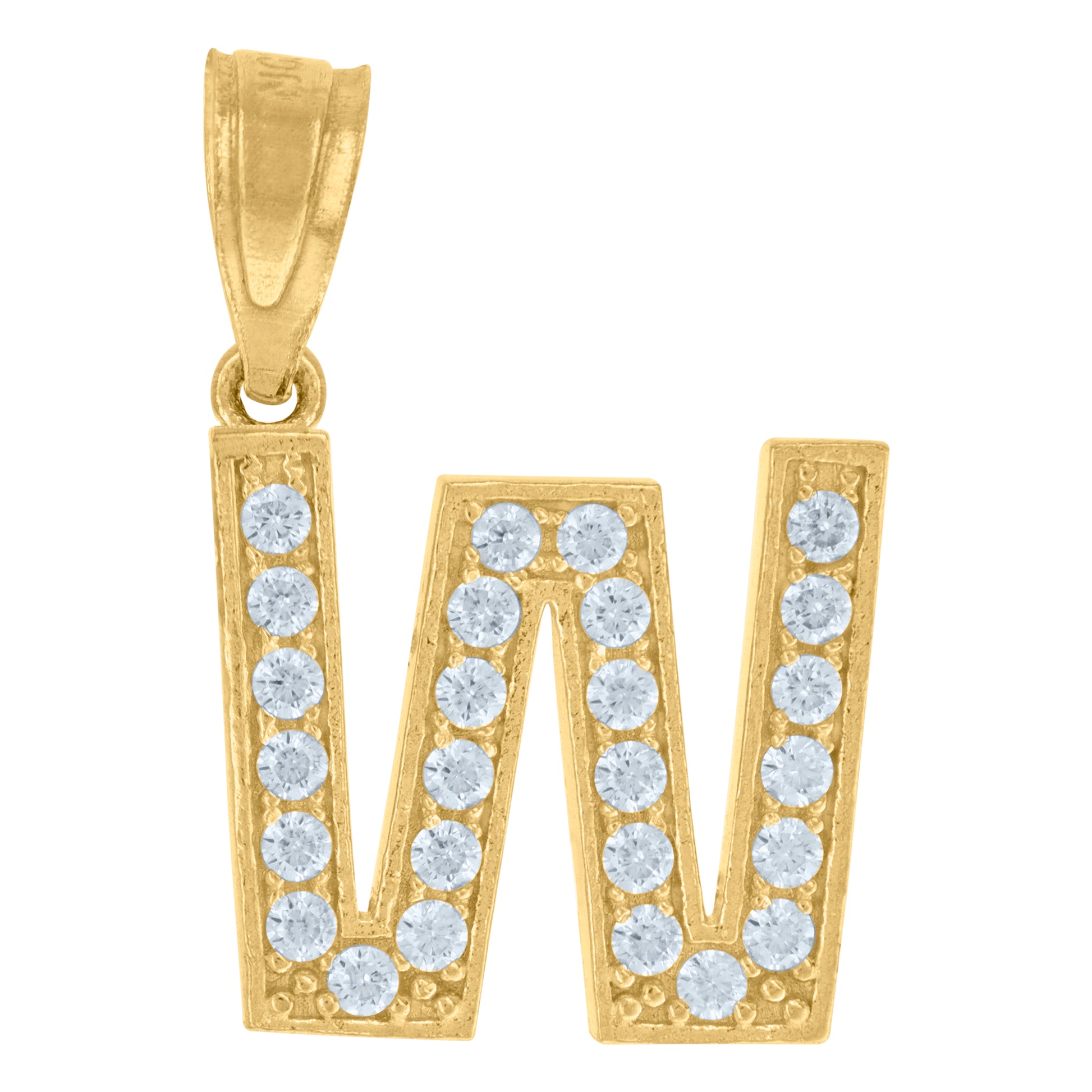 10kt Yellow Gold Unisex Cubic-Zirconia Letter W Alphabet Initials Charm Pendant