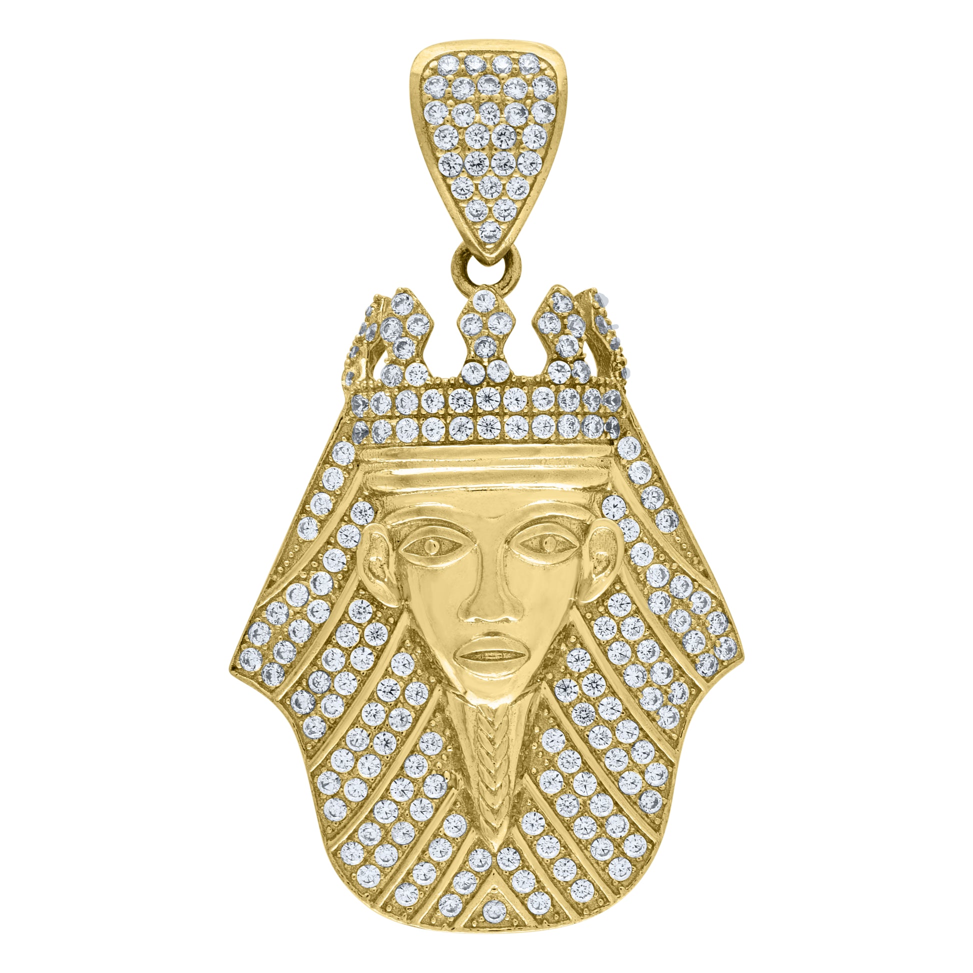 10Kt Yellow Gold Mens Cubic Zirconia Pharaoh Egyptian Charm Pendant