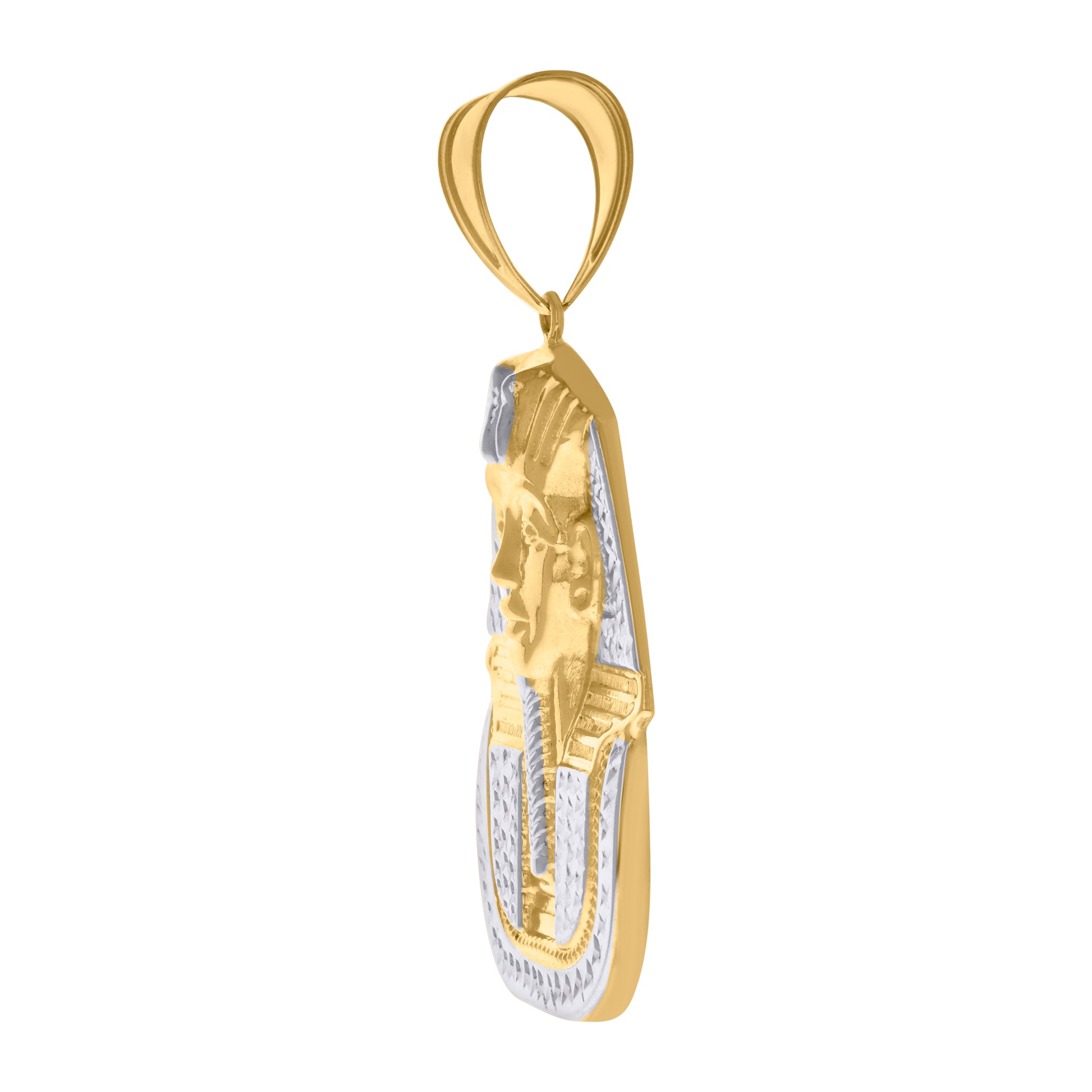 10Kt Two-Tone Gold Mens Diamond-Cut Pharaoh Charm Pendant