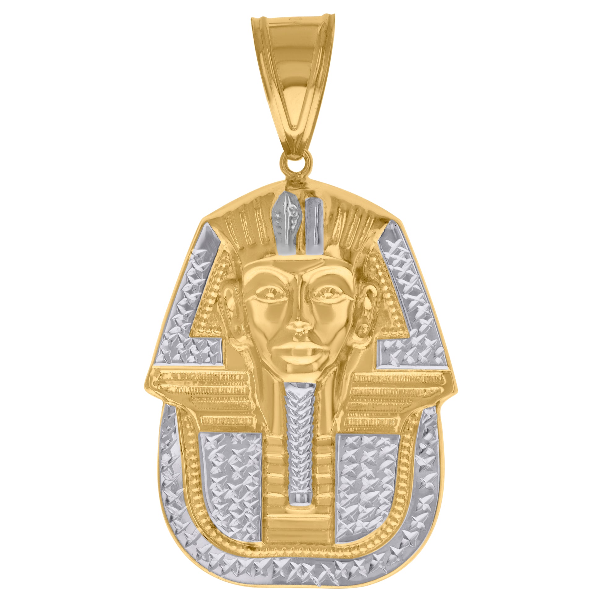 10Kt Two-Tone Gold Mens Diamond-Cut Pharaoh Charm Pendant