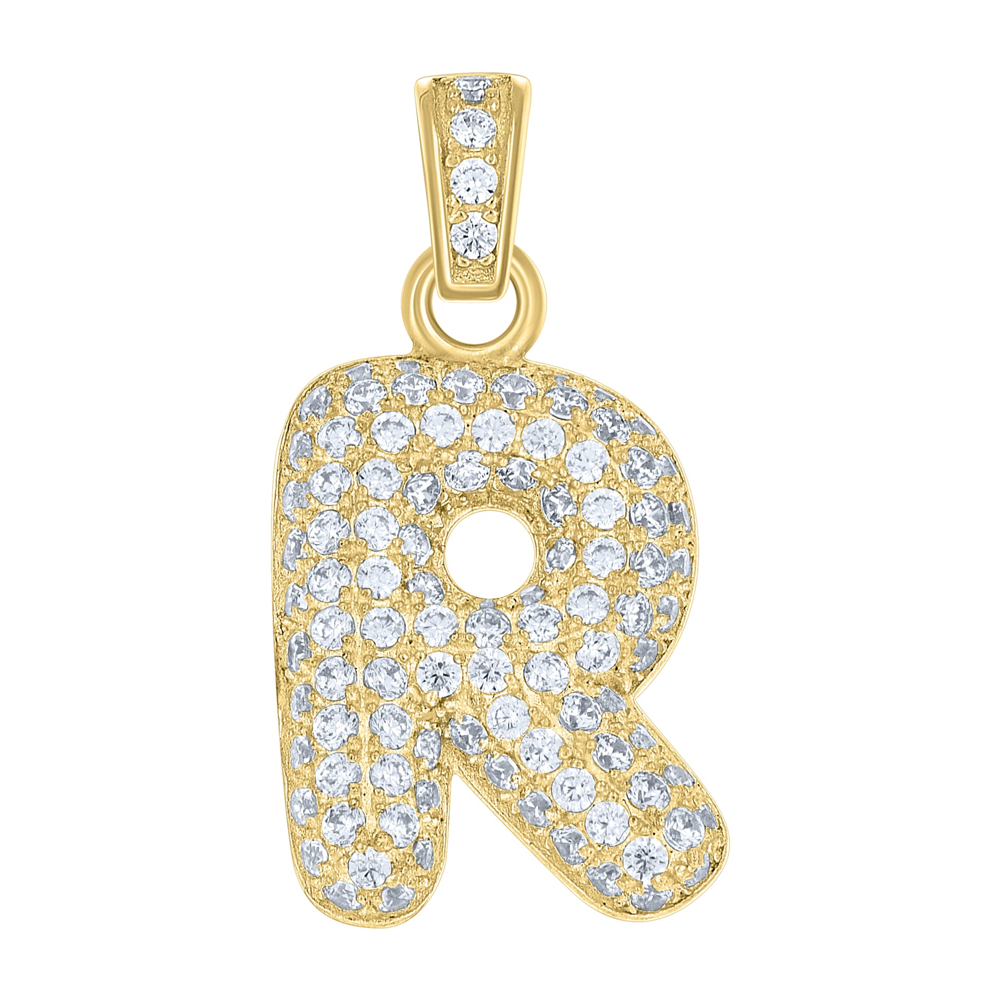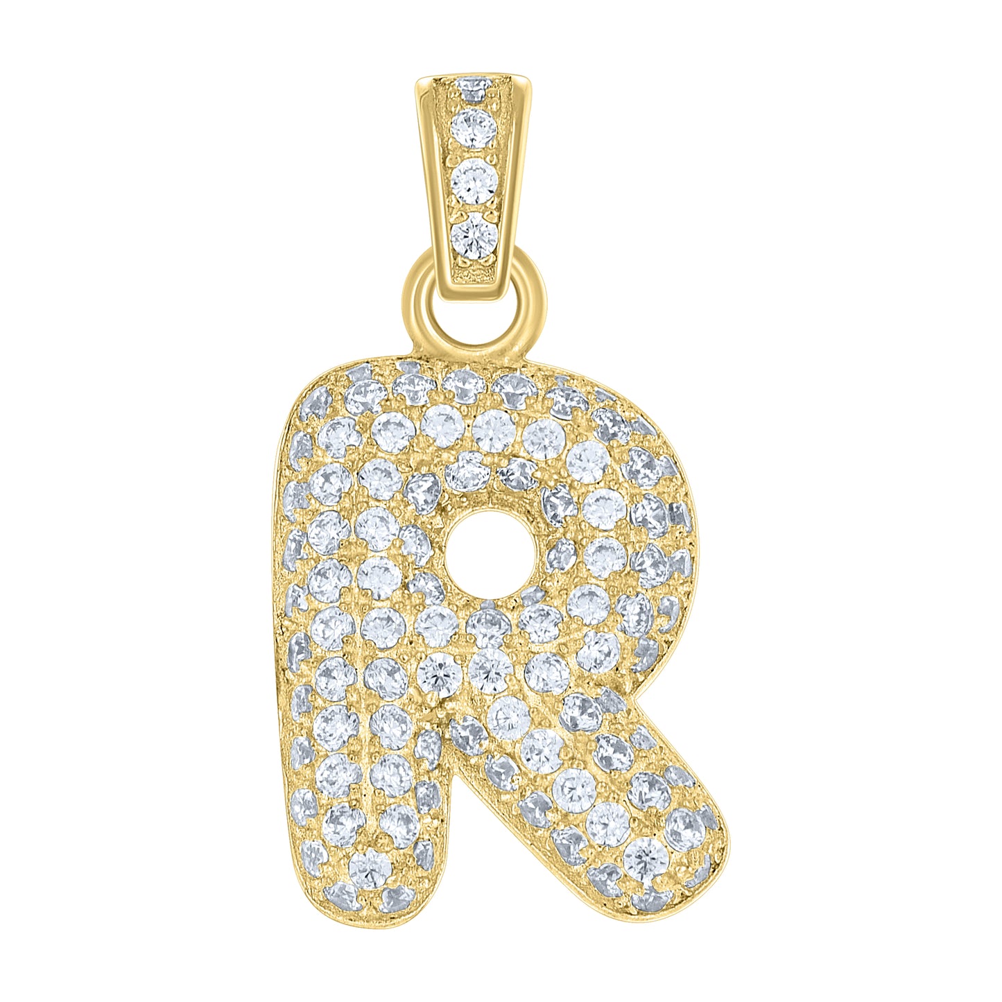 10kt Yellow Gold Unisex Cubic Zirconia Bubble Initial Letter R Charm Pendant