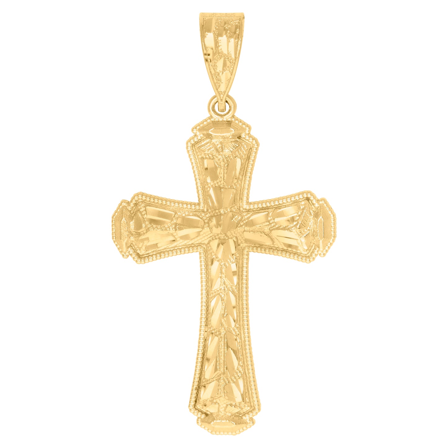 10kt Yellow Gold Diamond-Cut Nugget Mens Cross Religious Charm Pendant