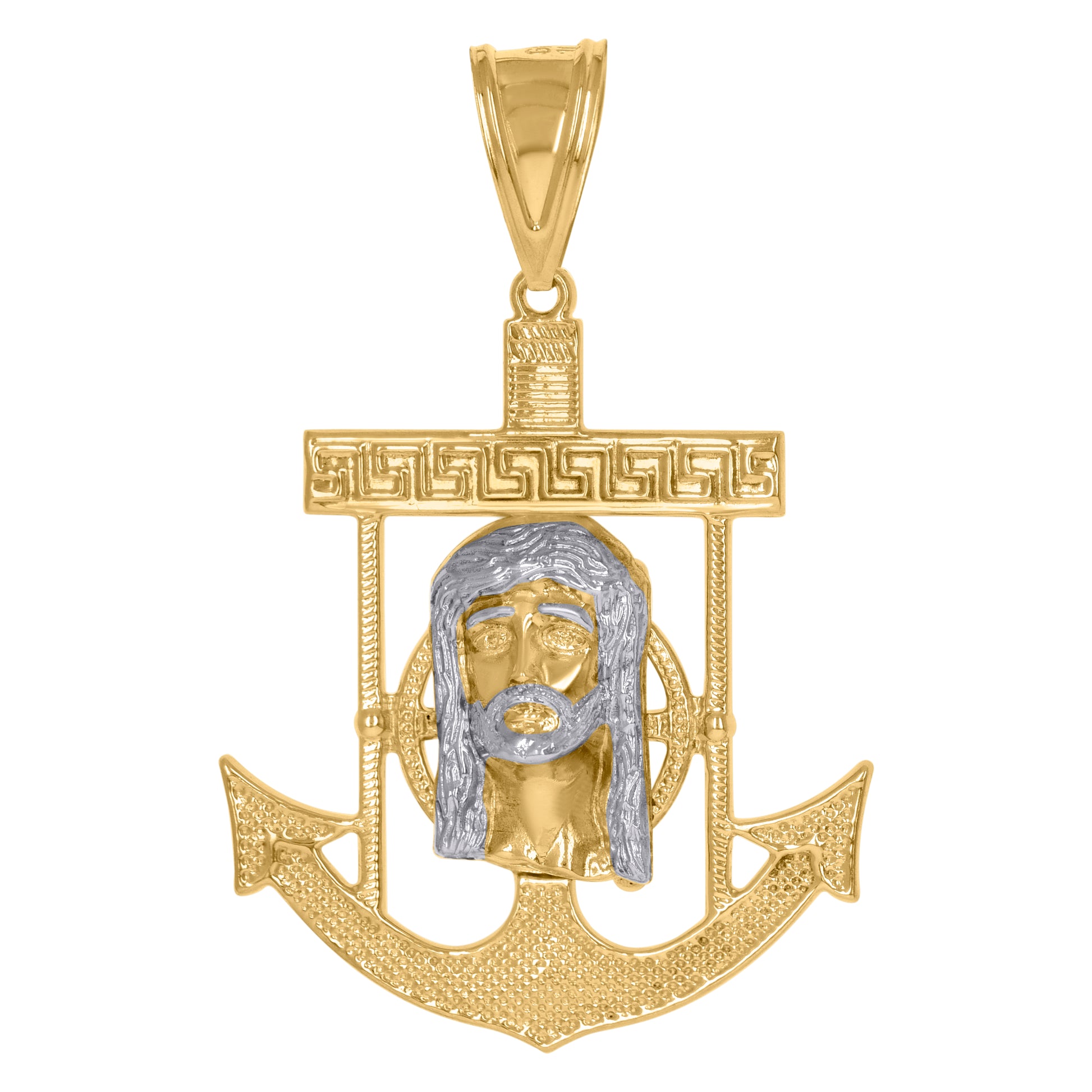 10kt Gold Two-Tone Diamond-Cut Mens Anchor Cross Jesus Religious Charm Pendant