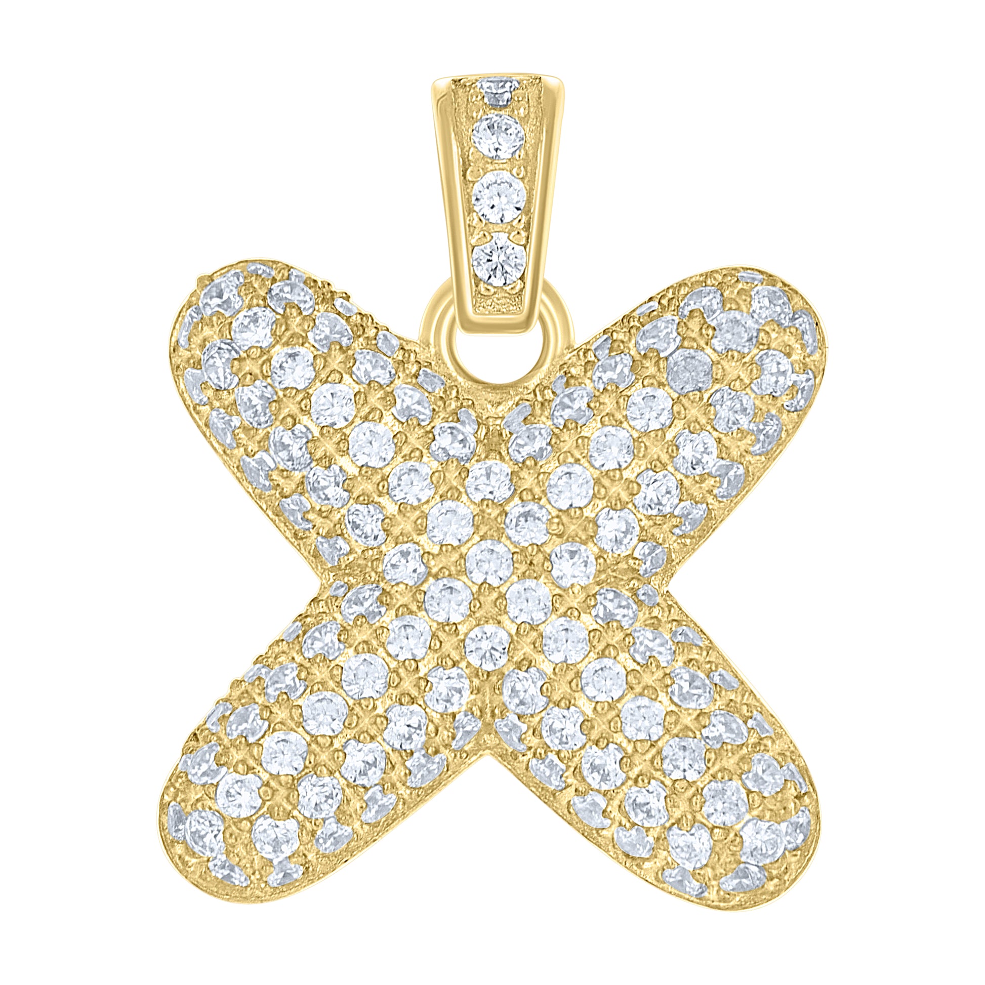 10kt Yellow Gold Unisex Cubic Zirconia Bubble Initial Letter X Charm Pendant