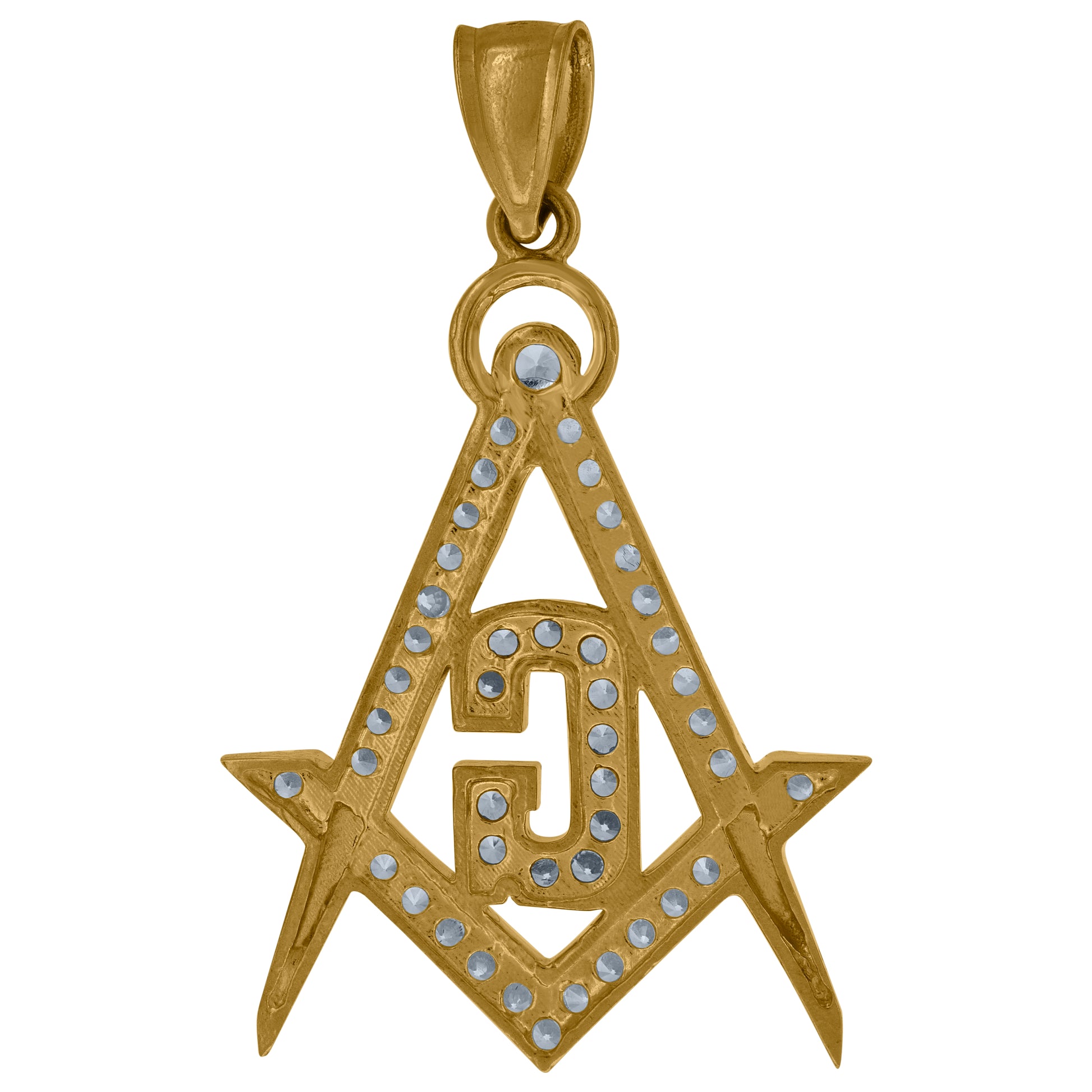 10kt Two-Tone Gold Cubic-Zirconia Unisex Masonic Religious Charm Pendant