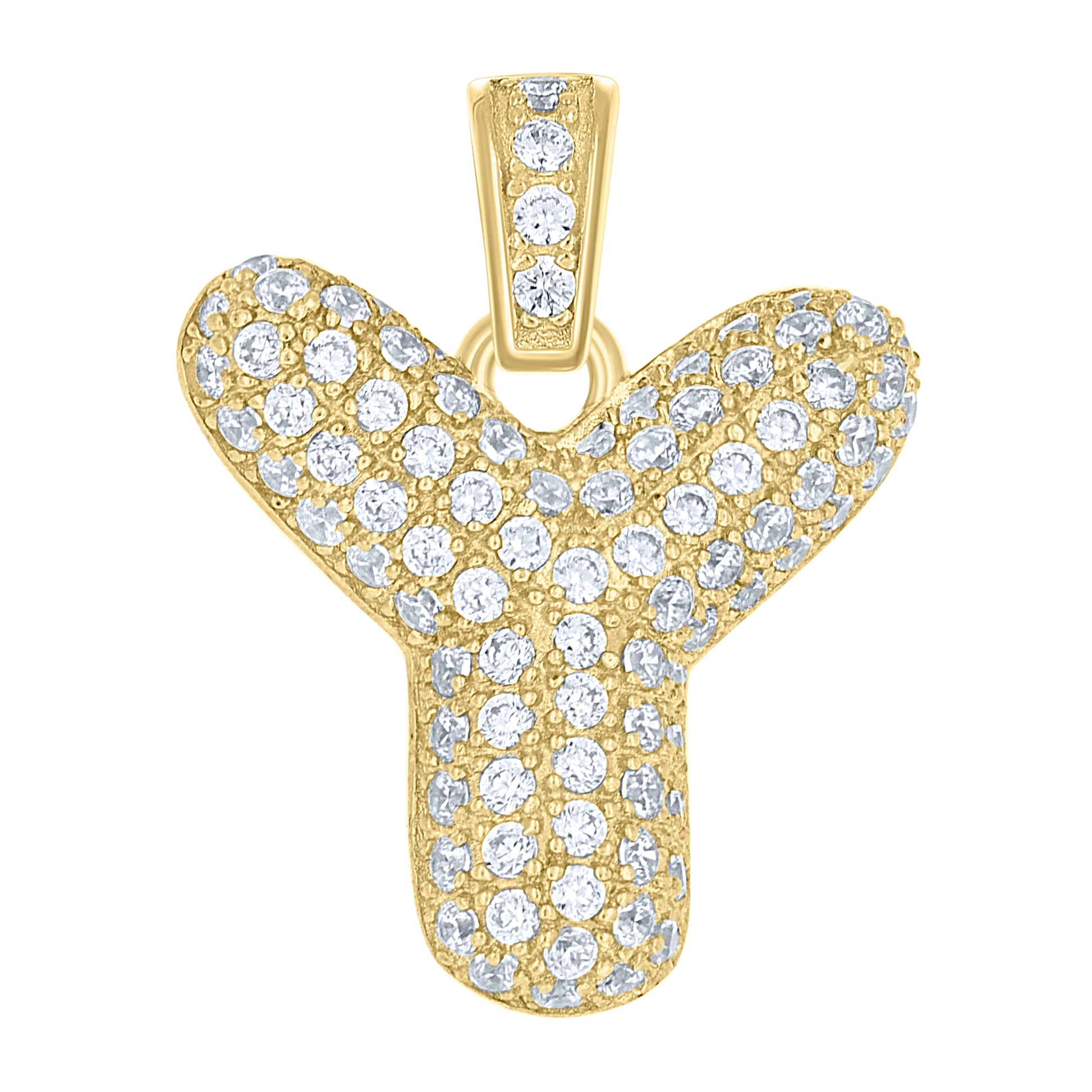 10kt Yellow Gold Unisex Cubic Zirconia Bubble Initial Letter Y Charm Pendant