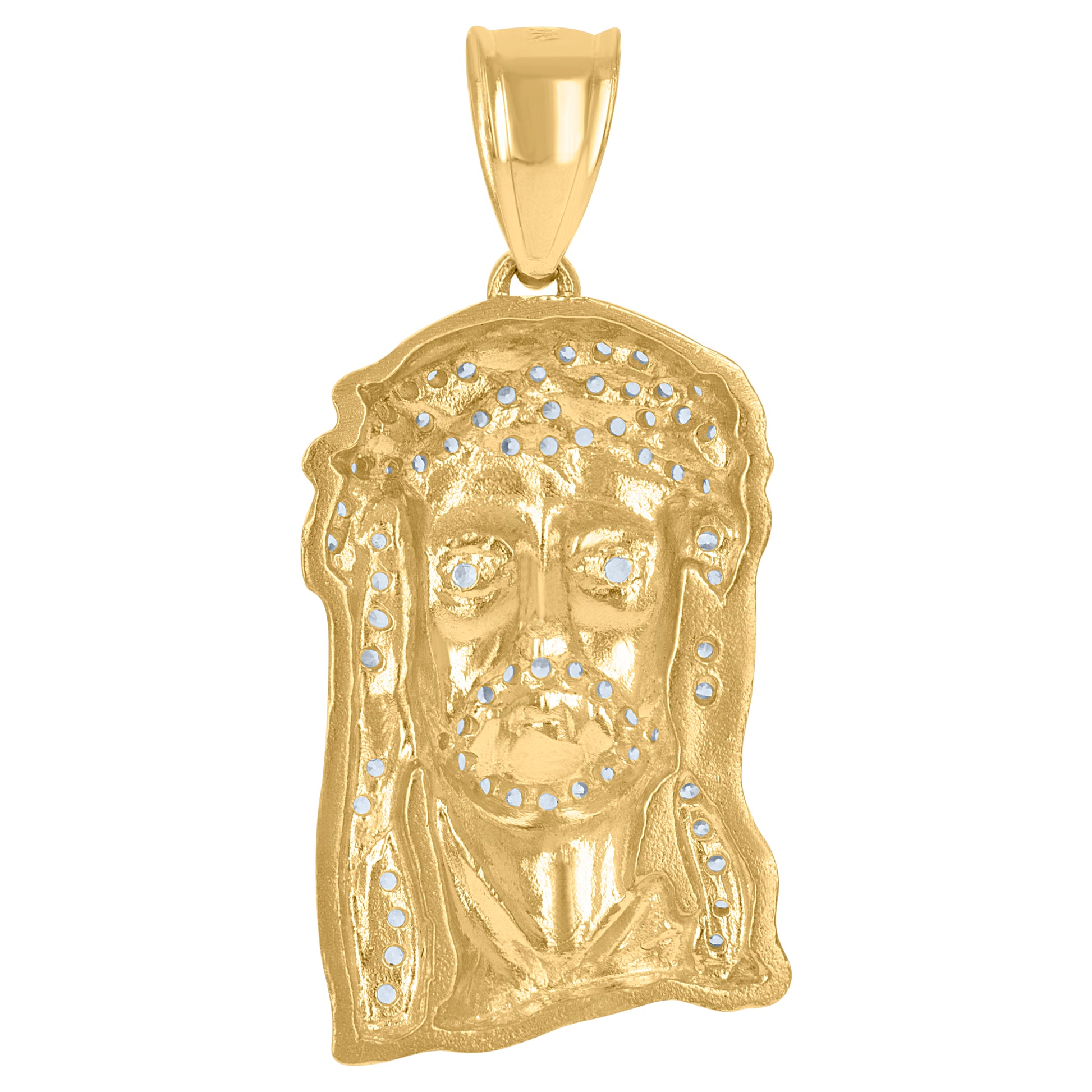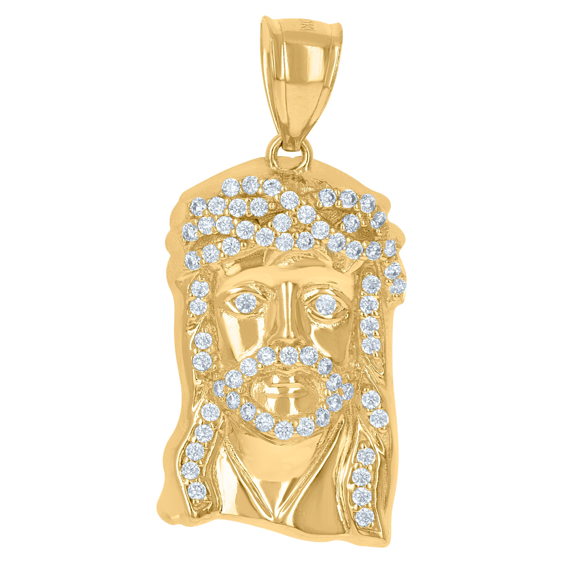 10Kt Yellow Gold Mens Cubic-Zirconia Jesus Religious Charm Pendant