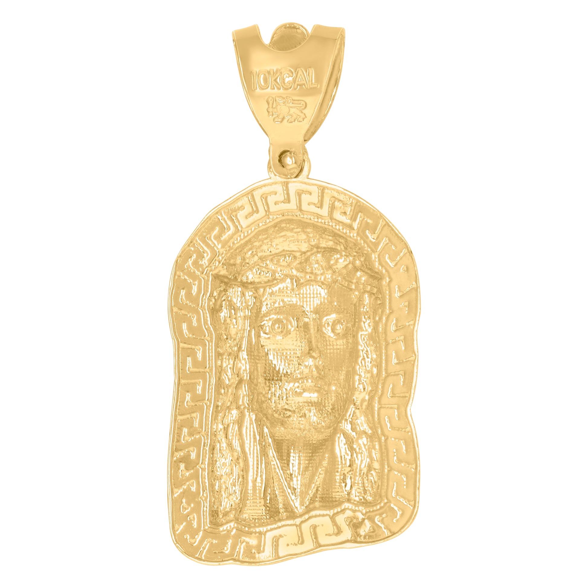 10Kt Yellow Gold Mens Greek Key Border Jesus Religious Charm Pendant