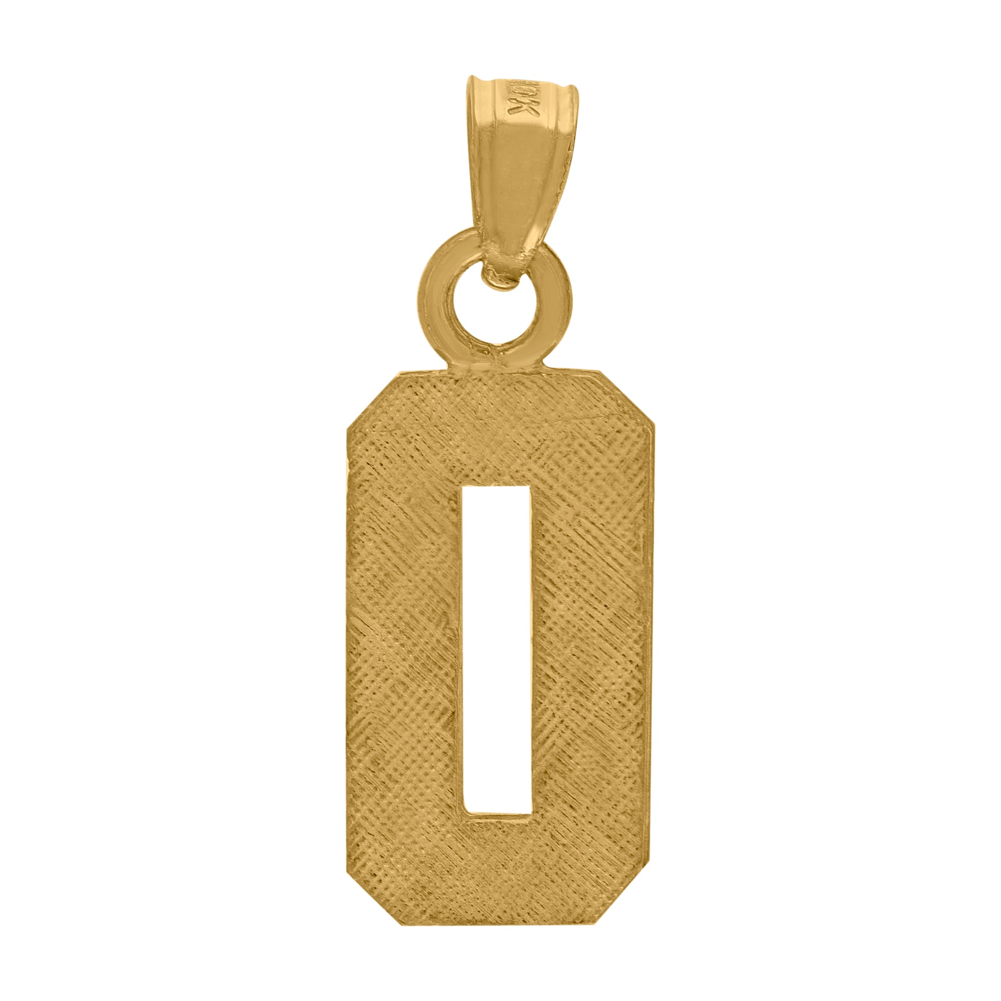 10kt Yellow Gold Unisex Textured Number 0 Charm Pendant