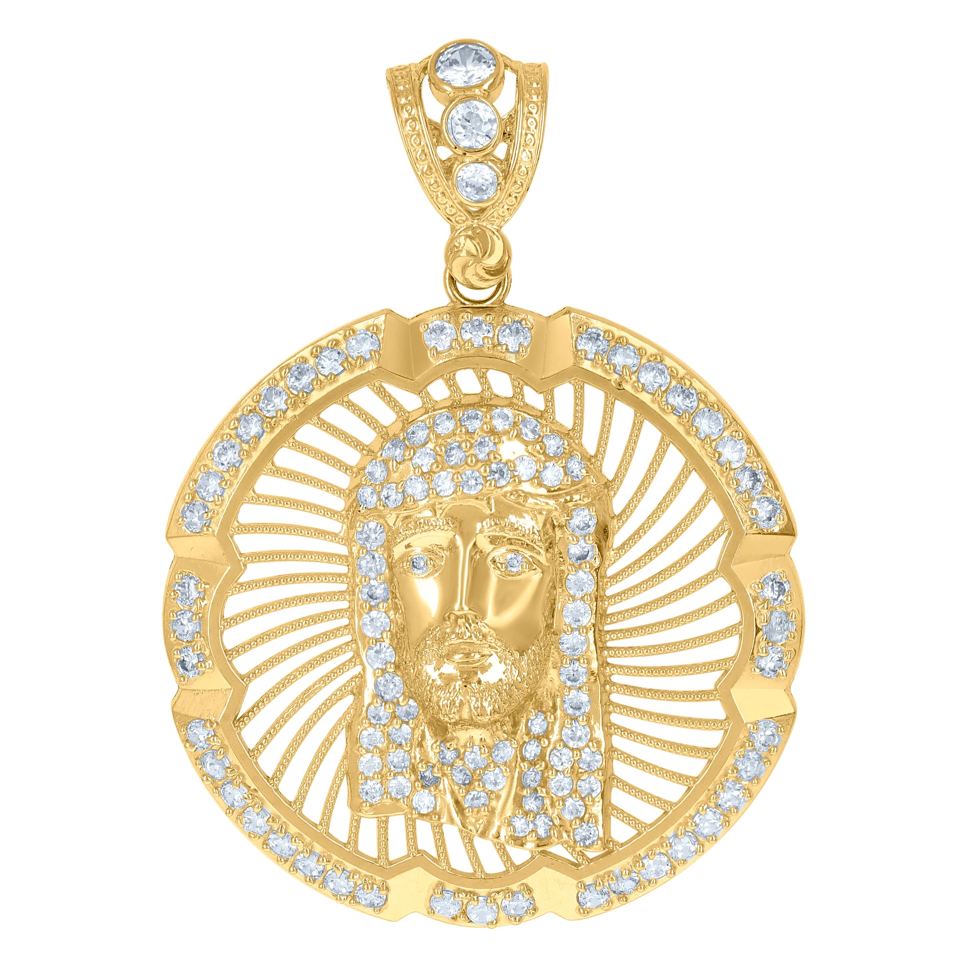 10Kt Yellow Gold Mens Cubic-Zirconia Medallion Jesus Religious Charm Pendant