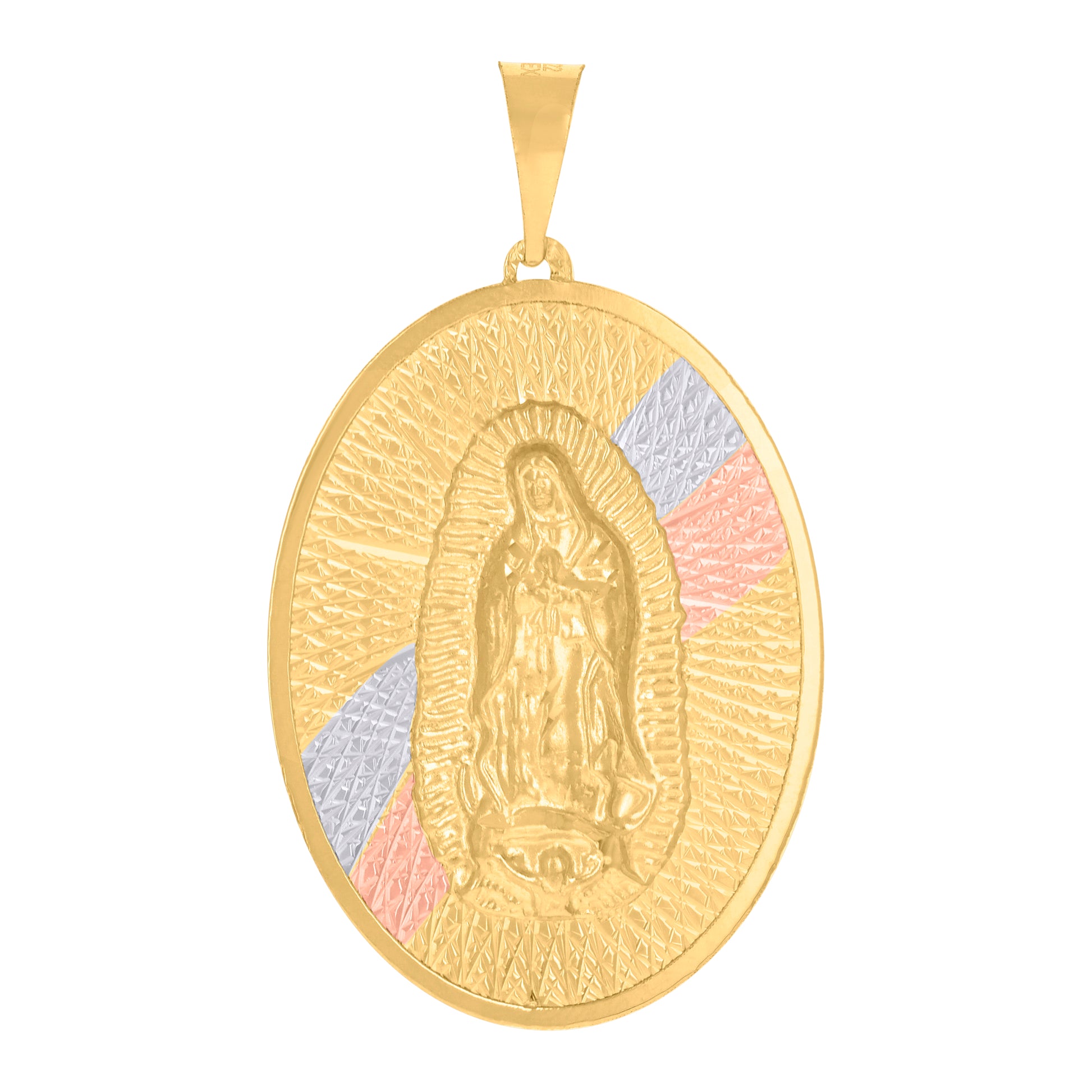 10kt Tri-Color Gold Mens Guadalupe Religious Oval Medallion Charm Pendant