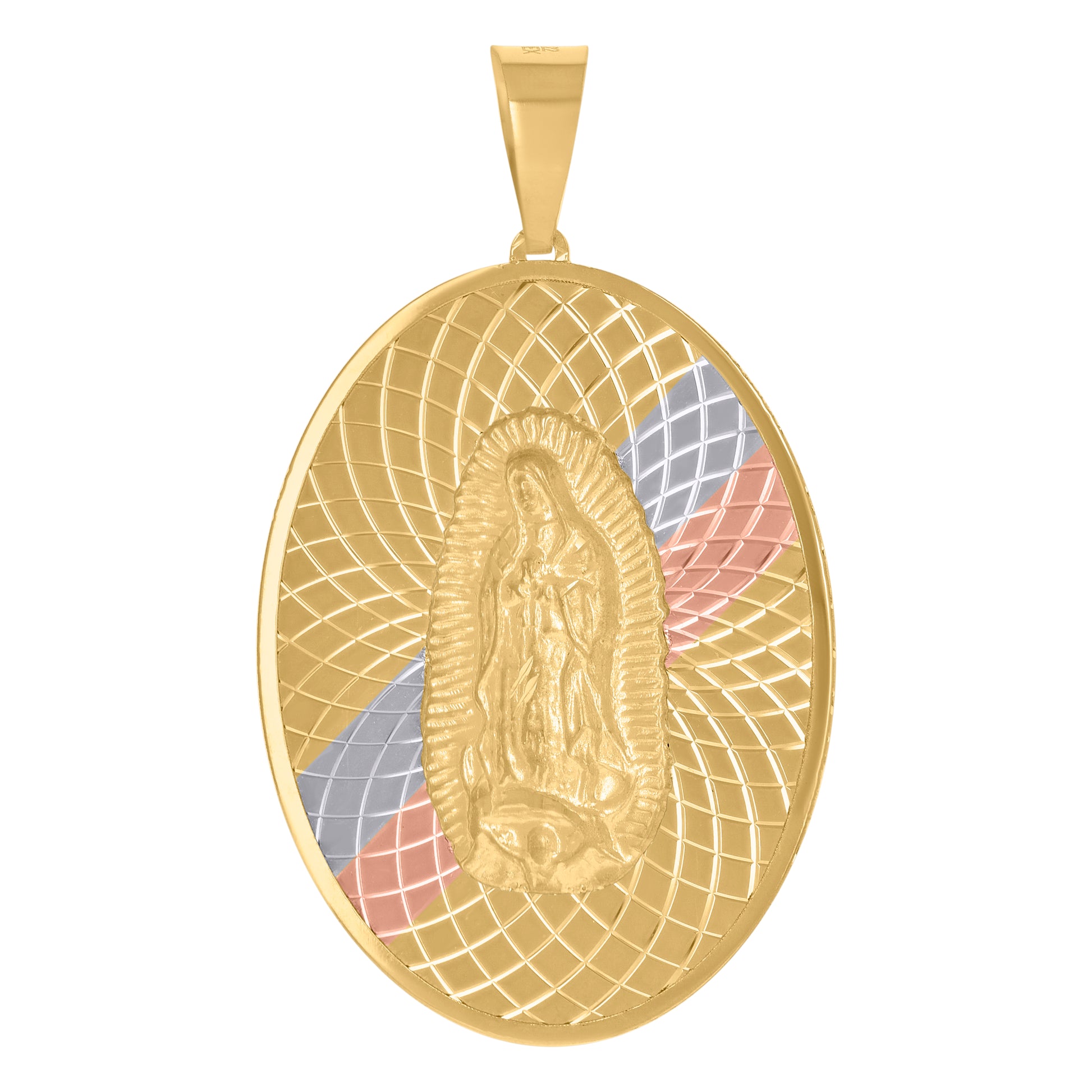10kt Tri-Color Gold Mens Guadalupe Religious Oval Medallion Charm Pendant