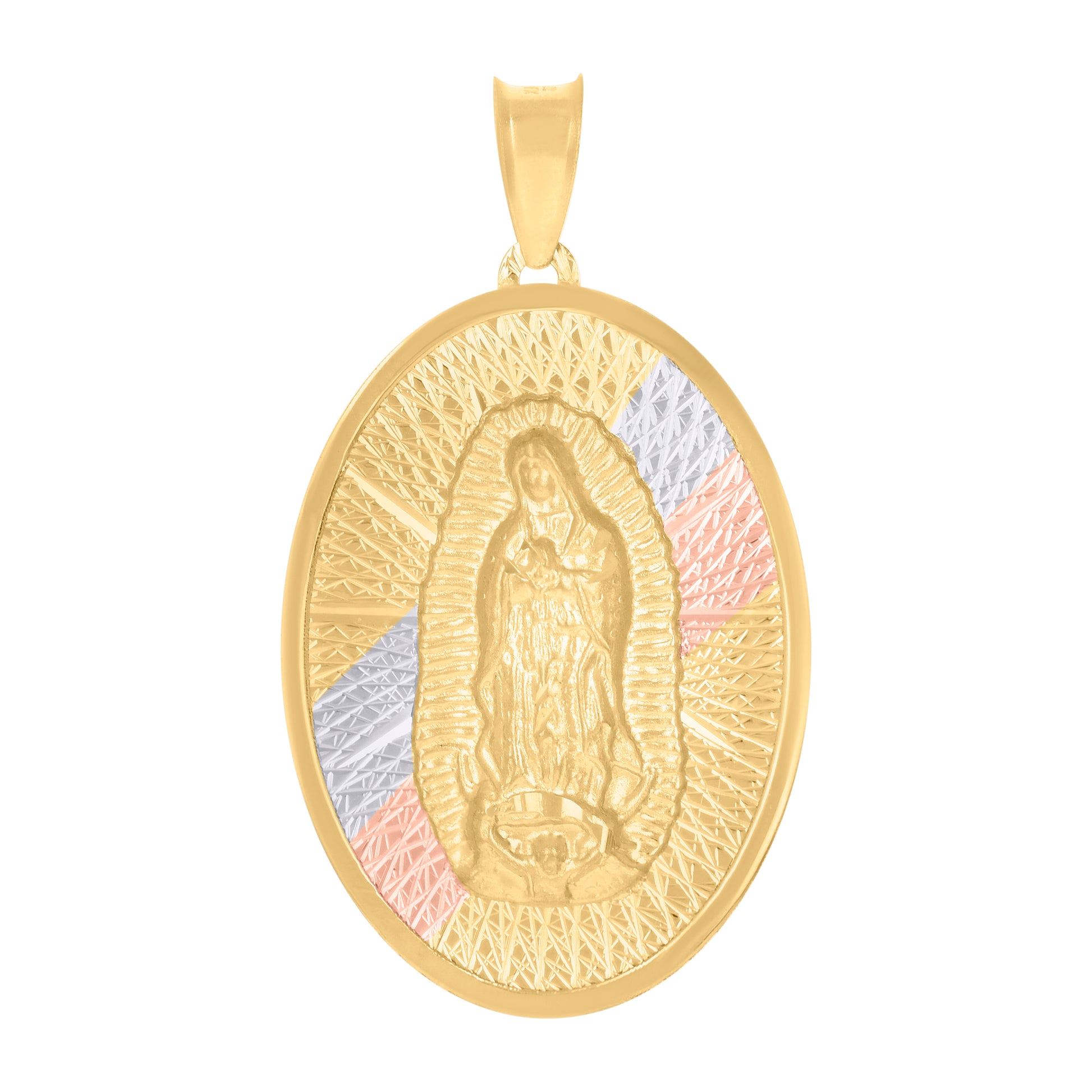 10kt Tri-Color Gold Mens Guadalupe Religious Oval Medallion Charm Pendant