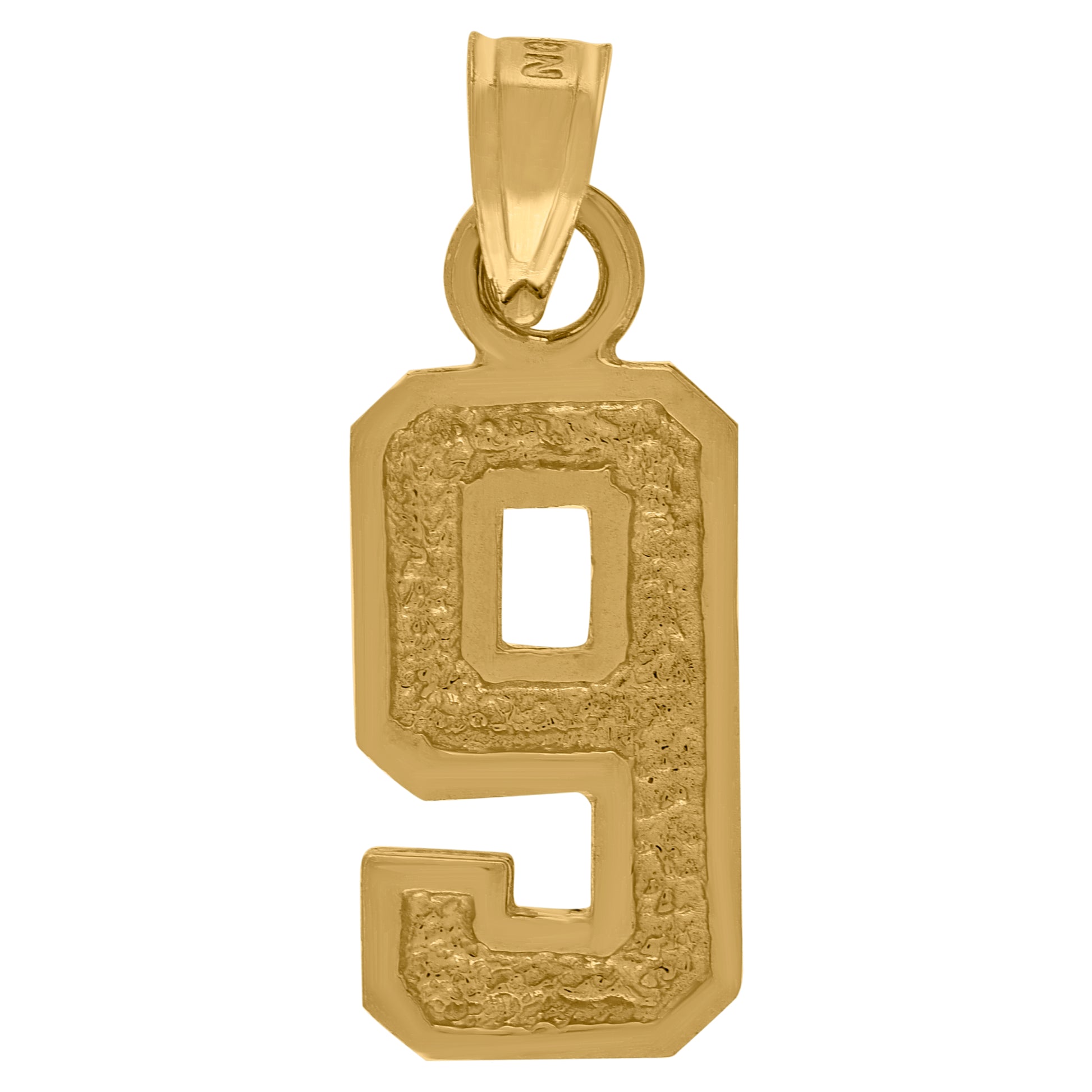10kt Yellow Gold Unisex Textured Number 9 Charm Pendant