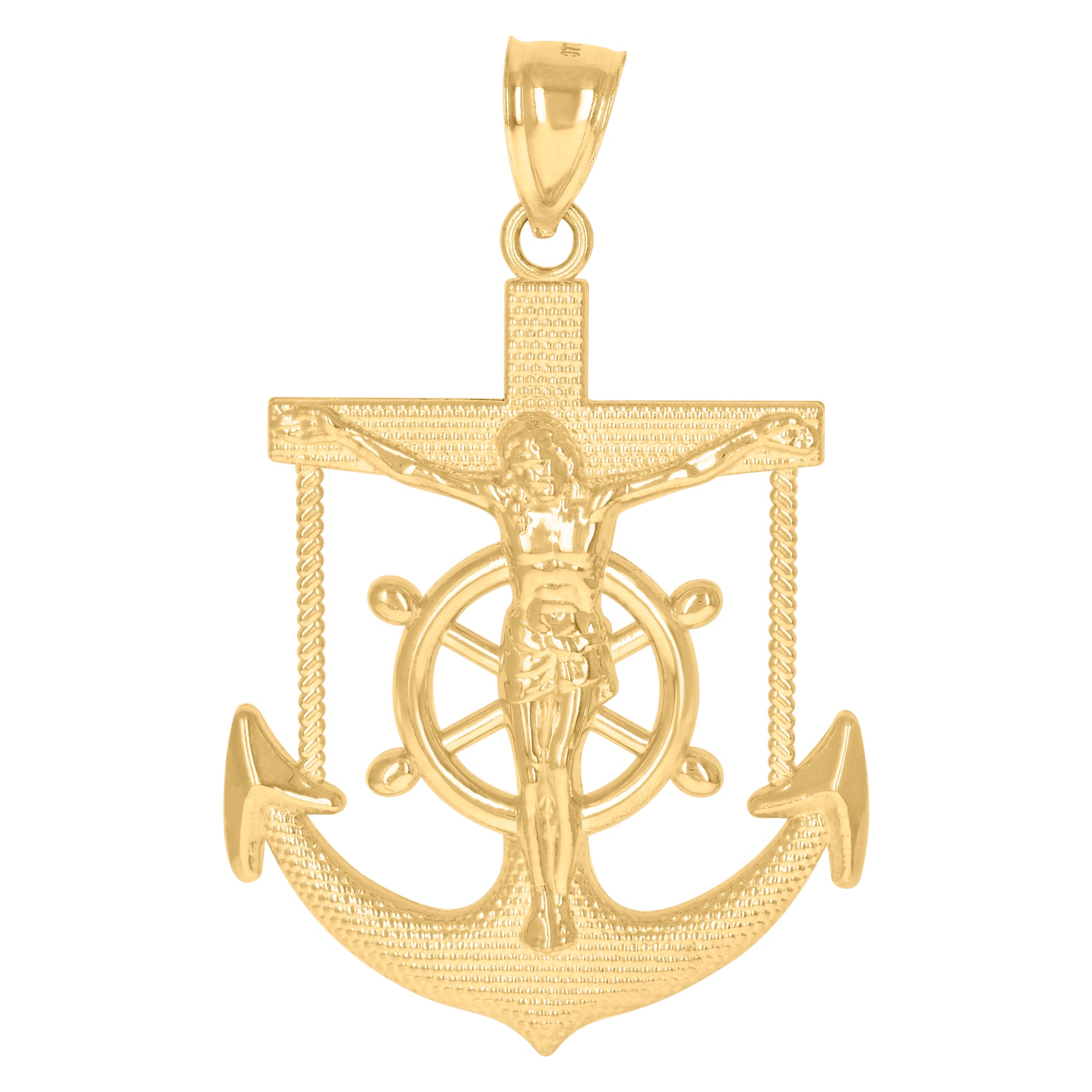 10kt Yellow Gold Mens Crucifix Anchor Religious Charm Pendant