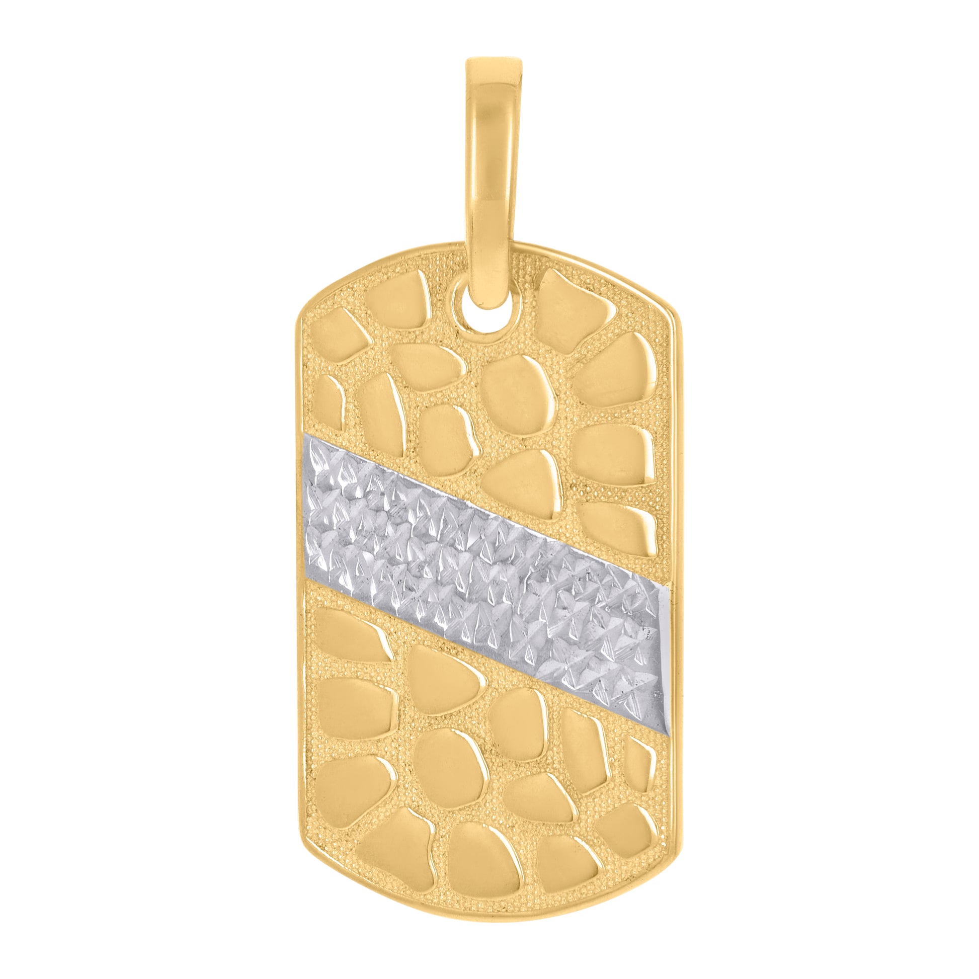 10kt Two-Tone Gold Mens Nugget Dog Tag Fashion Charm Pendant