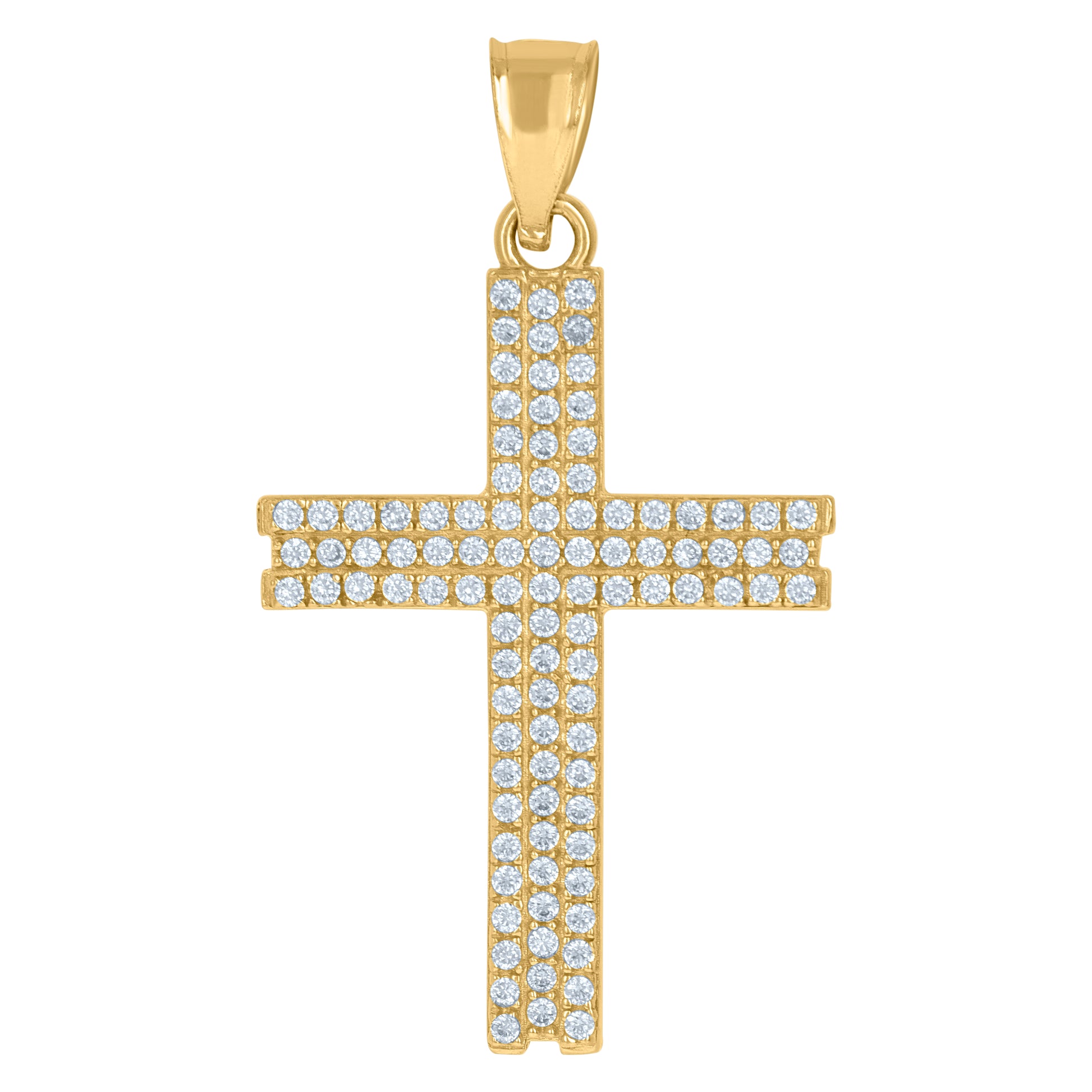 10kt Yellow Gold Mens Cubic Zirconia Cross Religious Charm Pendant