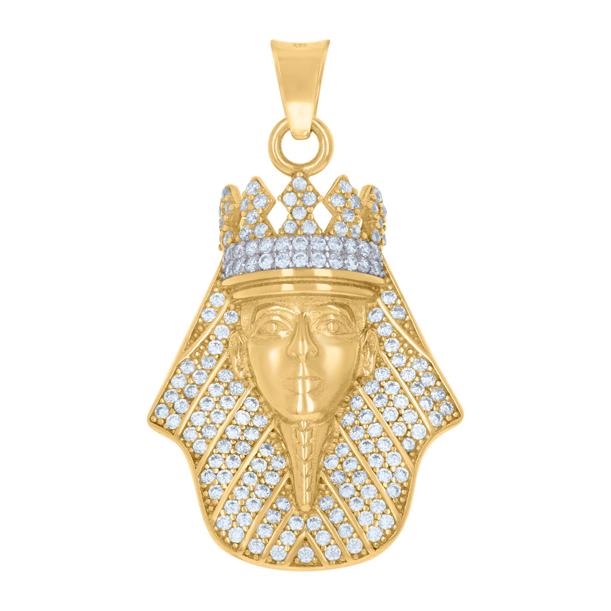 10kt Two-Tone Gold Mens Cubic-Zirconia Pharaoh Egyptian Charm Pendant