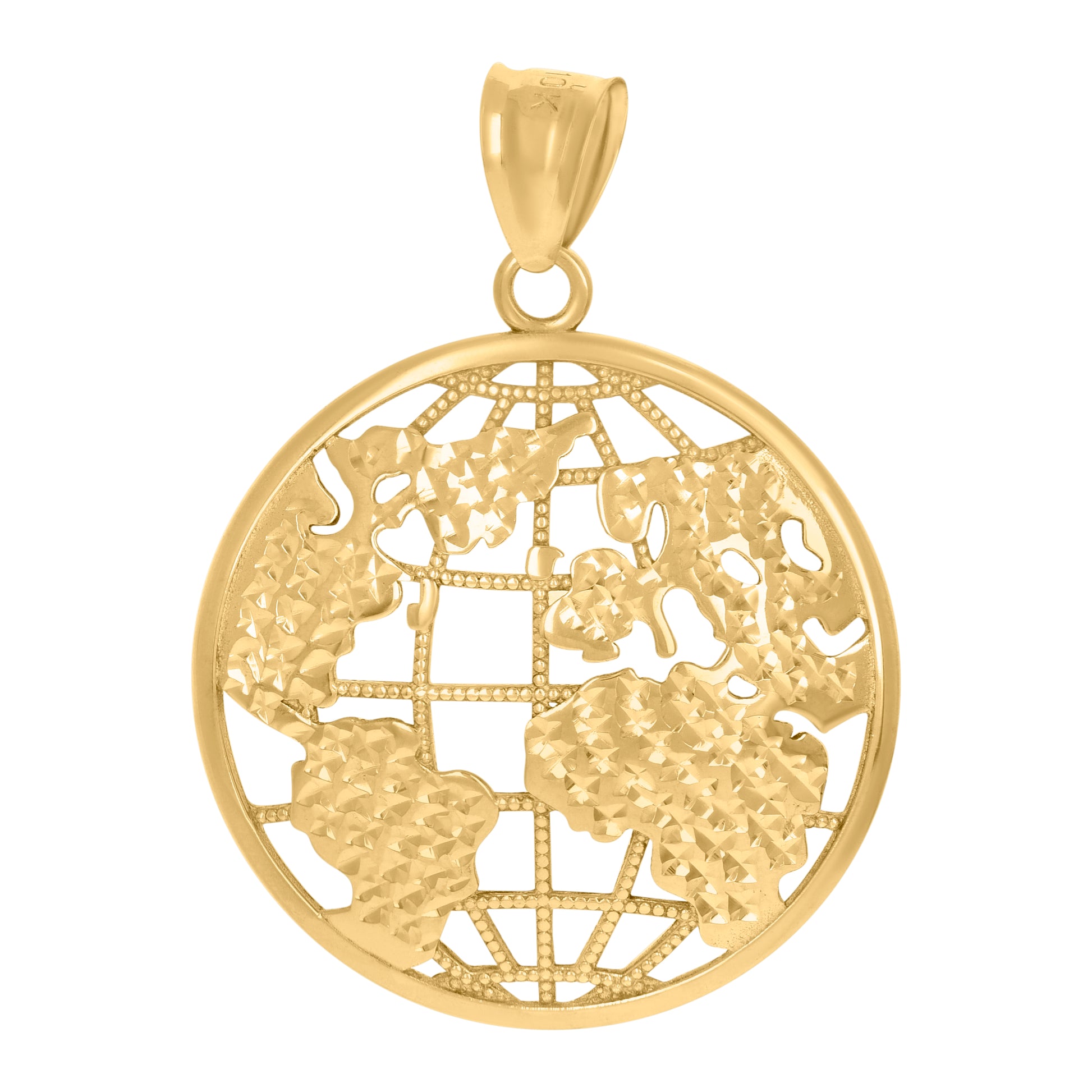 10kt Yellow Gold Mens World Map Globe Maps Charm Pendant