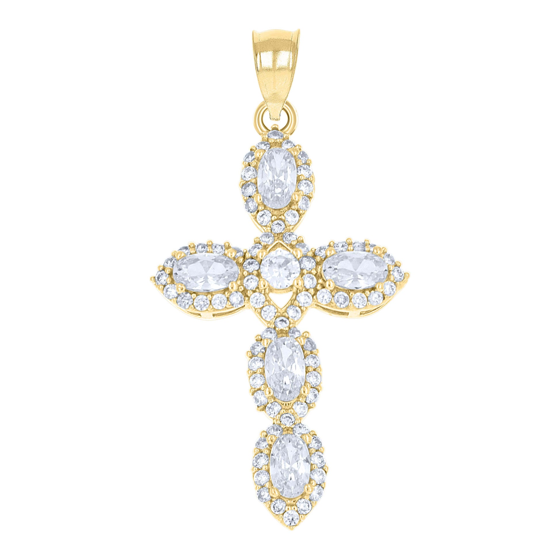 10kt Yellow Gold Mens Cubic Zirconia Cross Religious Charm Pendant