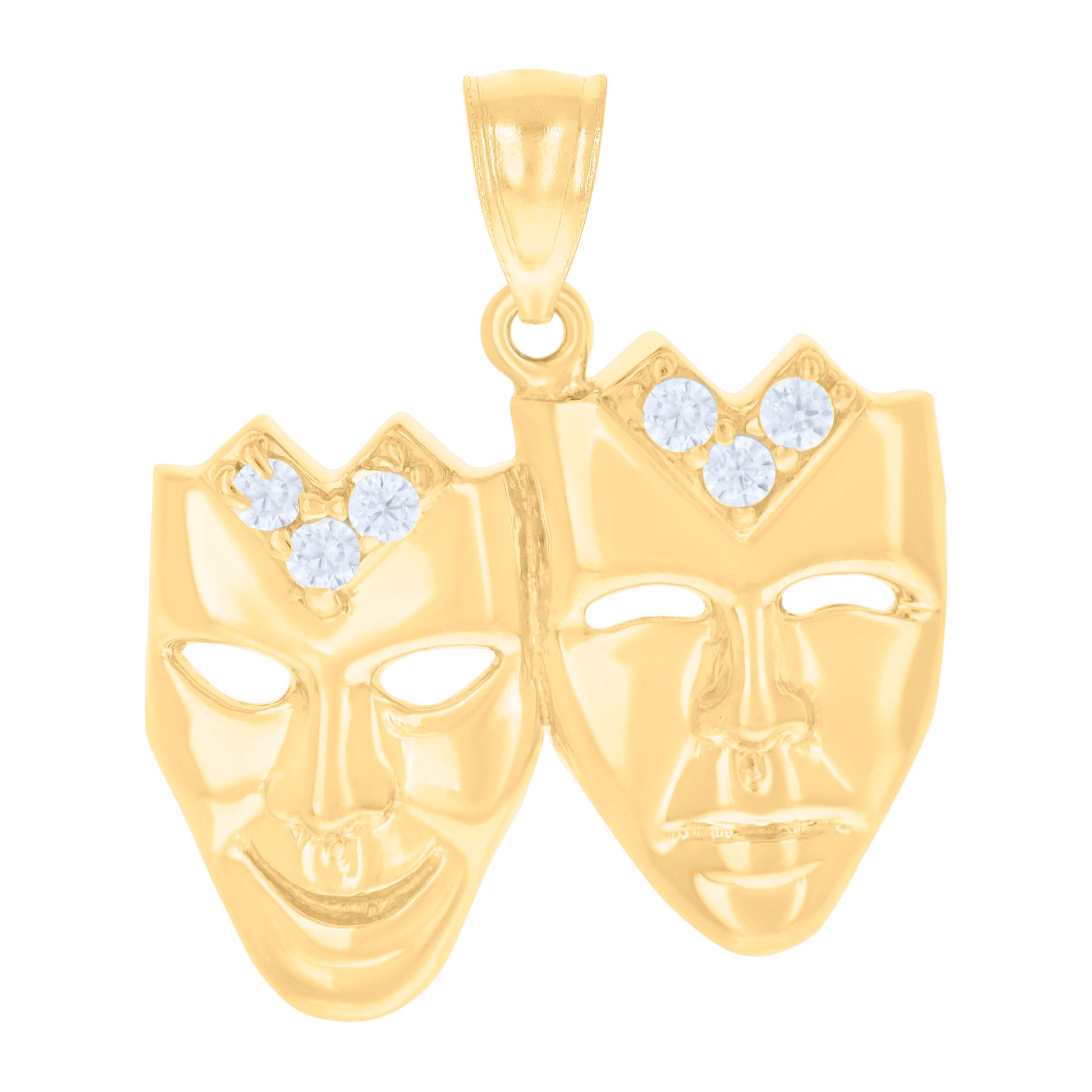 10kt Yellow Gold Cubic-Zirconia Mens Comedy Tragedy Masks Charm Pendant