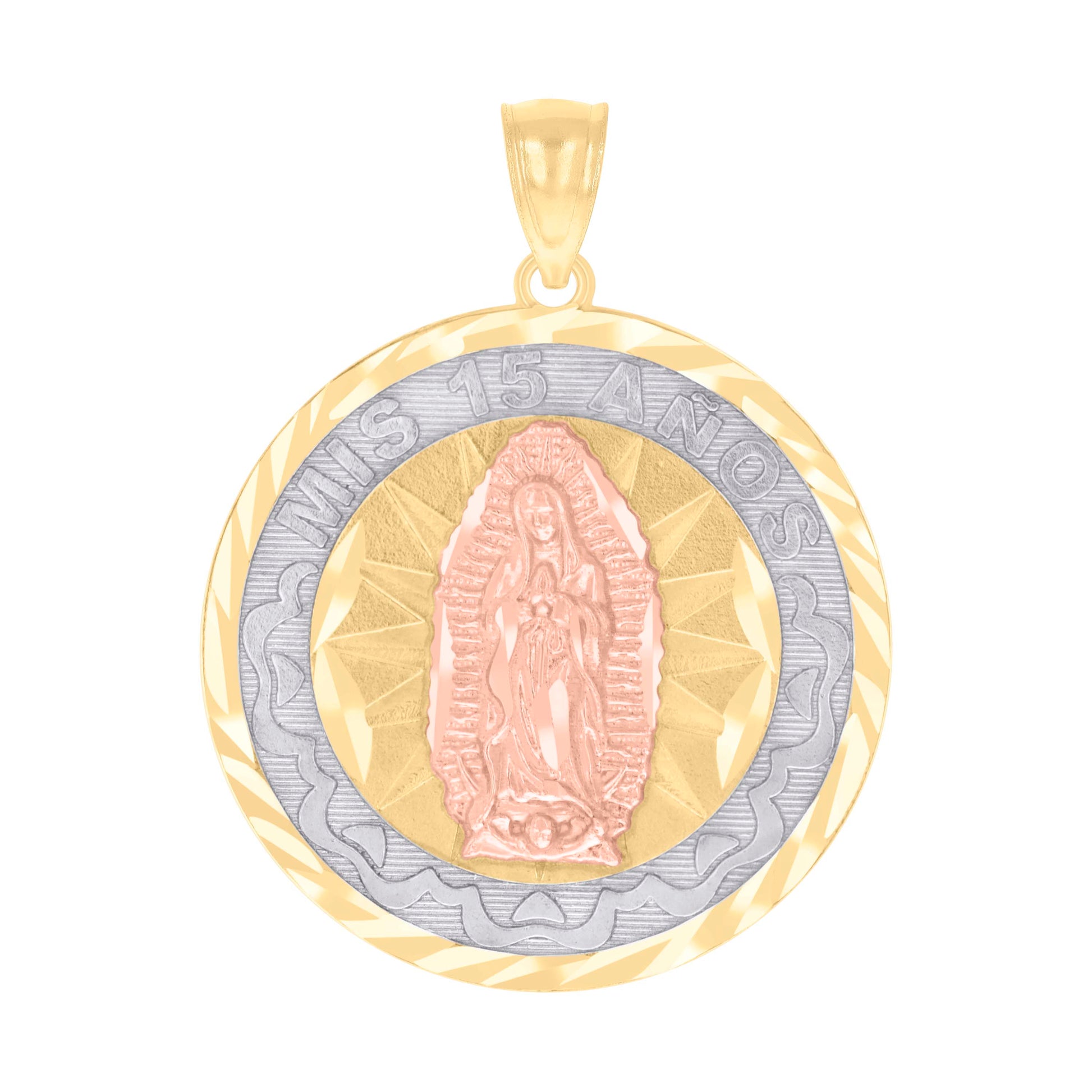 10kt Gold Tri-Color Diamond-Cut Womens Mary Mis 15 Anos Quinceanera Charm Pendant