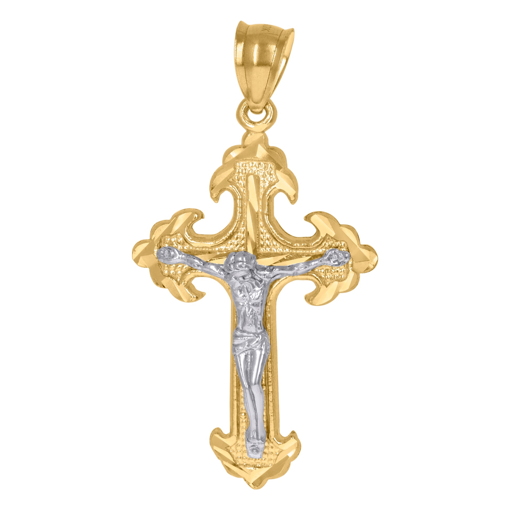 10kt Gold Two-Tone Diamond-Cut Mens Cross Crucifix Religious Charm Pendant