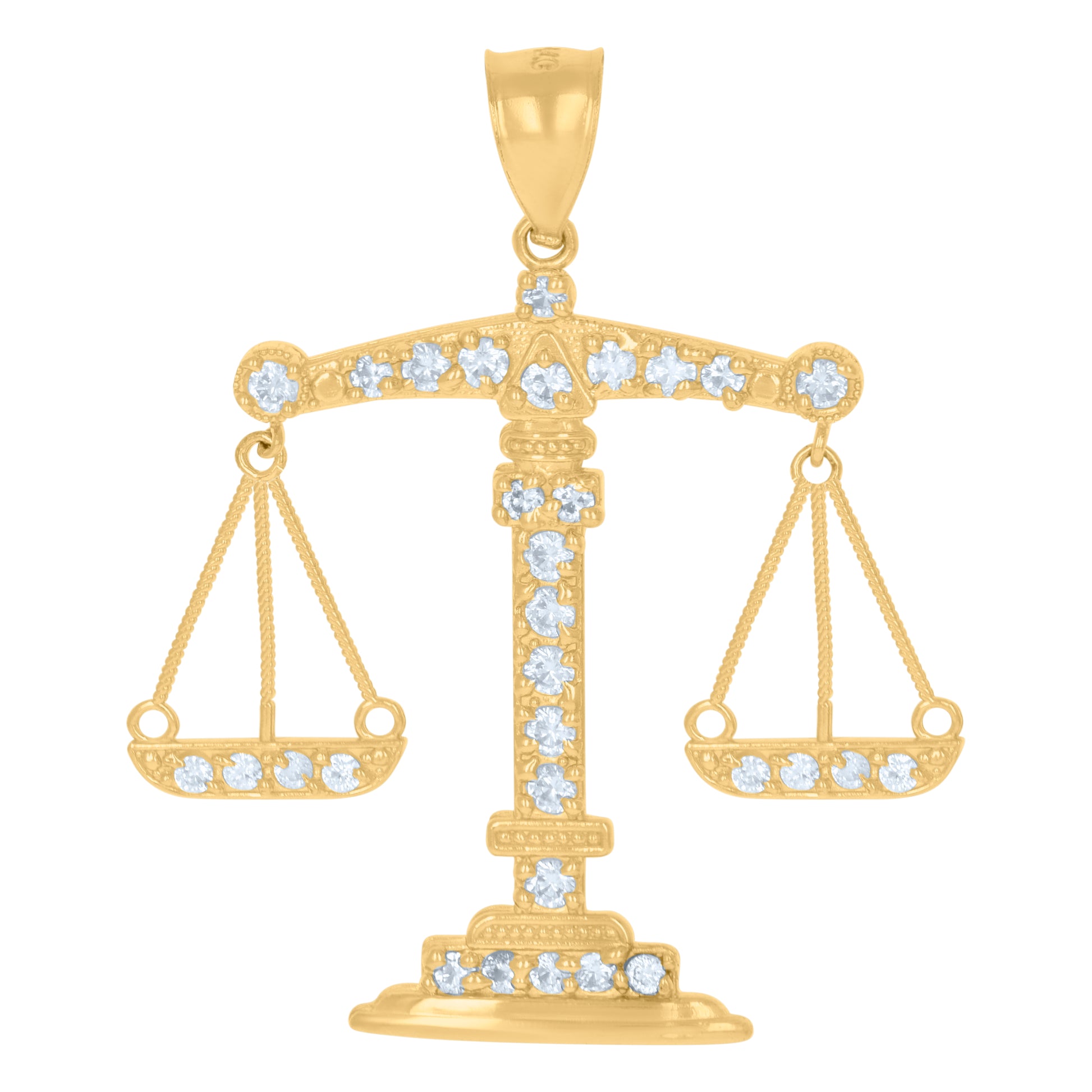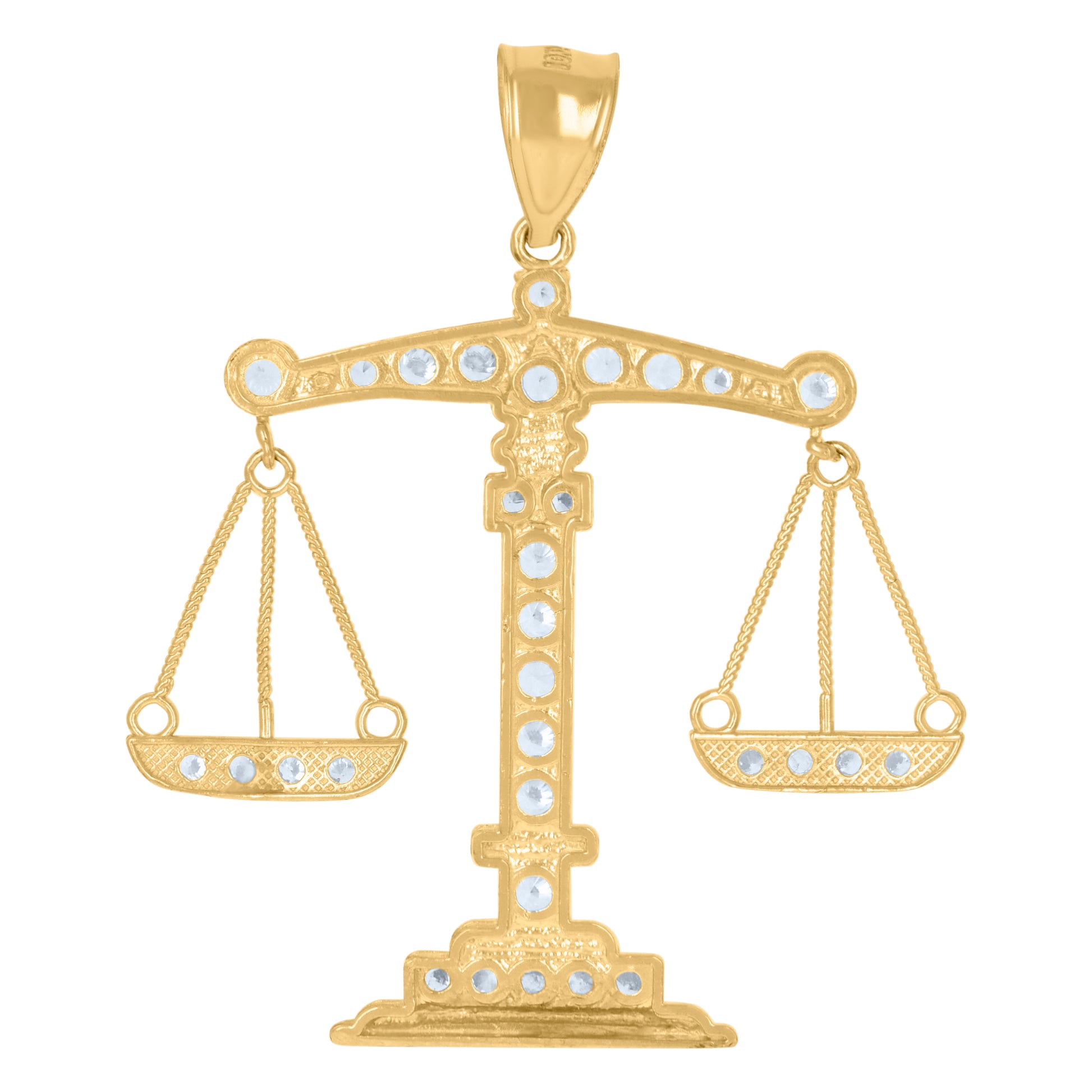 10kt Yellow Gold Mens Cubic-Zirconia Libra Zodiac Sign Charm Pendant