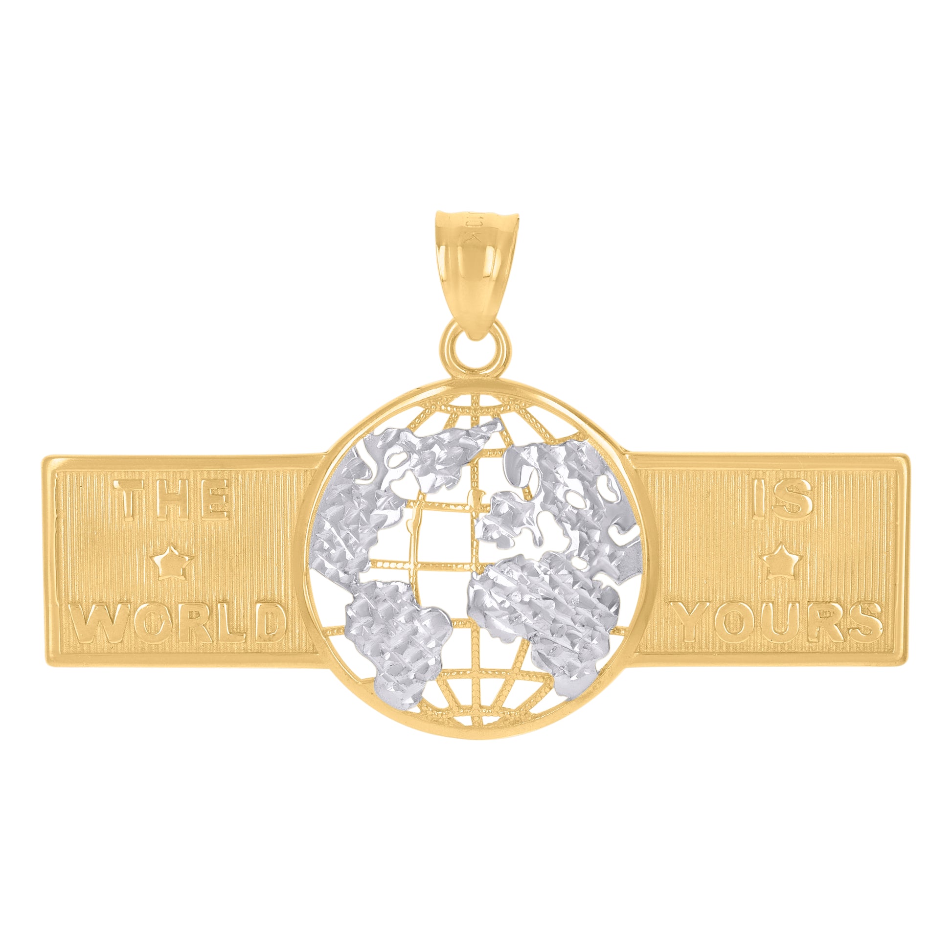 10kt Two-Tone Gold Mens The World Is Yours World Map Charm Pendant