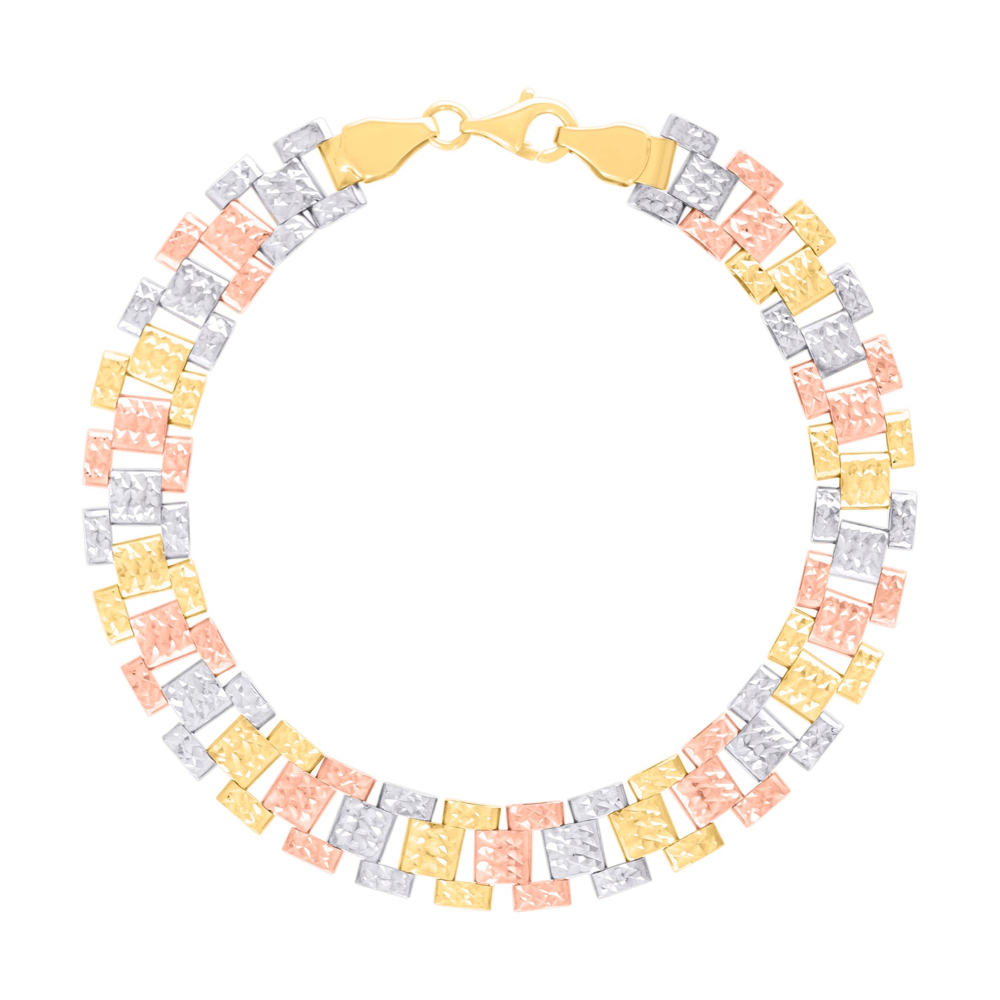 10kt Tri-Color Gold Womens Diamond-Cut Fashion Link Bracelet Size 7.5 Inches