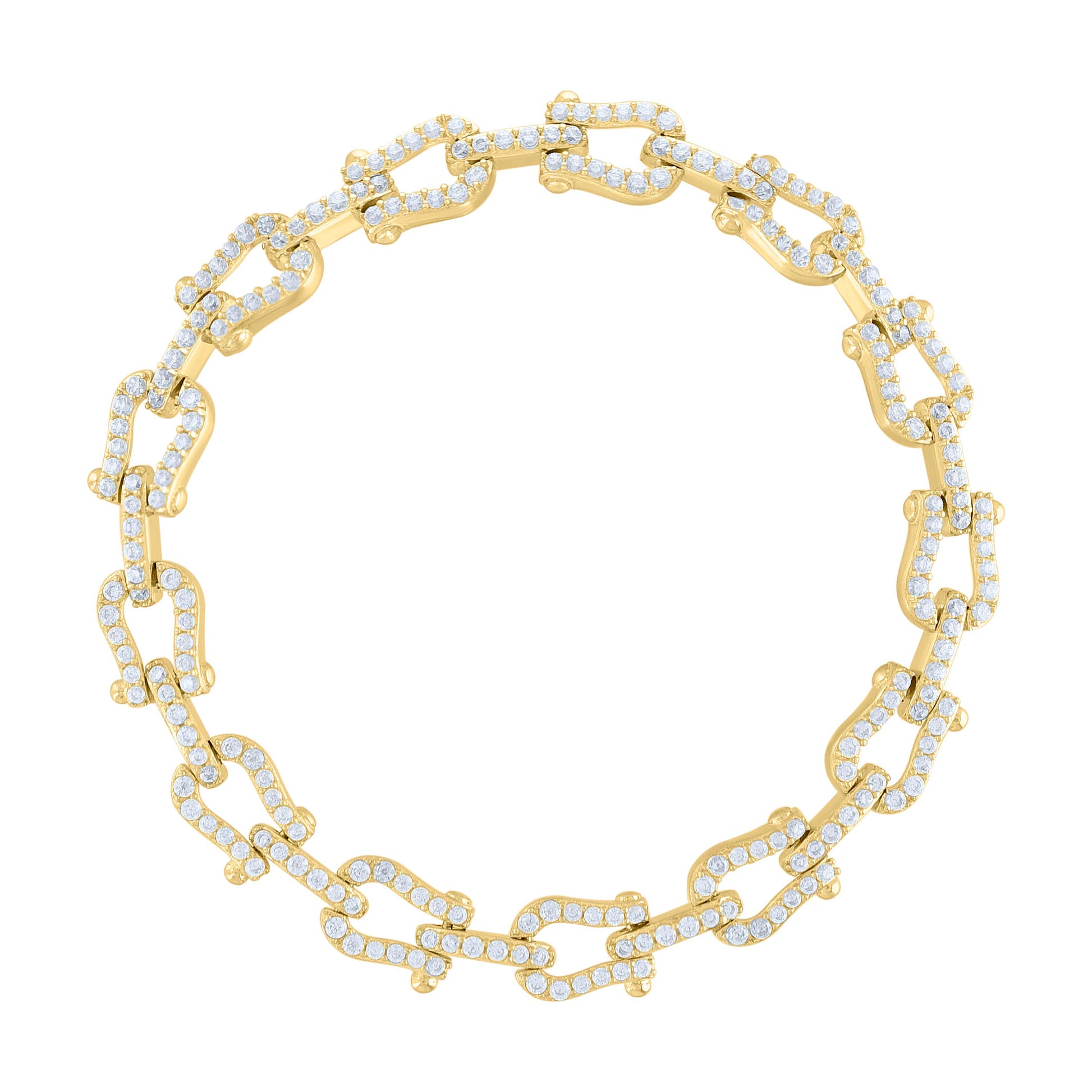10kt Yellow Gold Womens Cubic-Zirconia Link Fashion Bracelet Size 7 Inches
