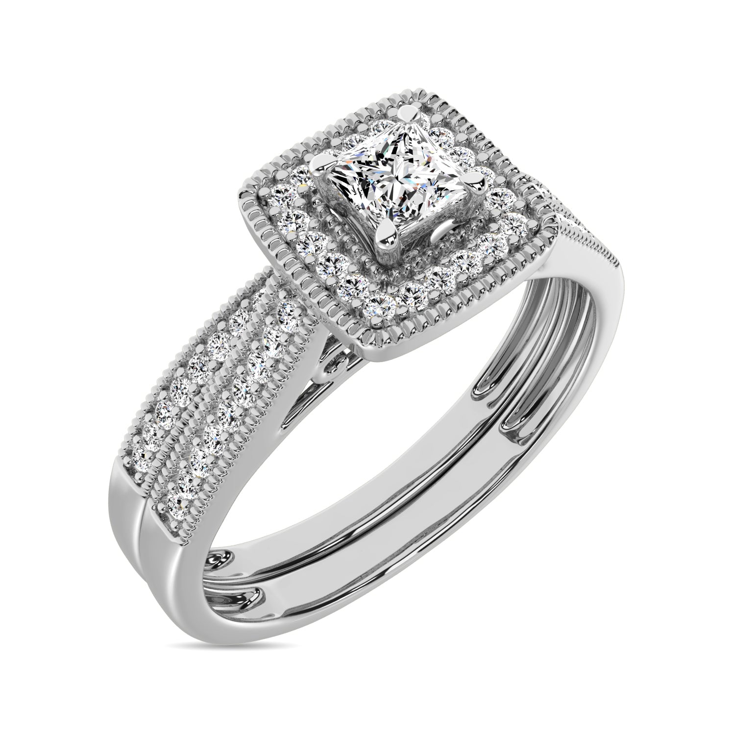 This Shimmering Bridal Set Is Made Of 10K White Gold And Designed With Diamonds Weighing Approximately 1/3 Ct.Tw.