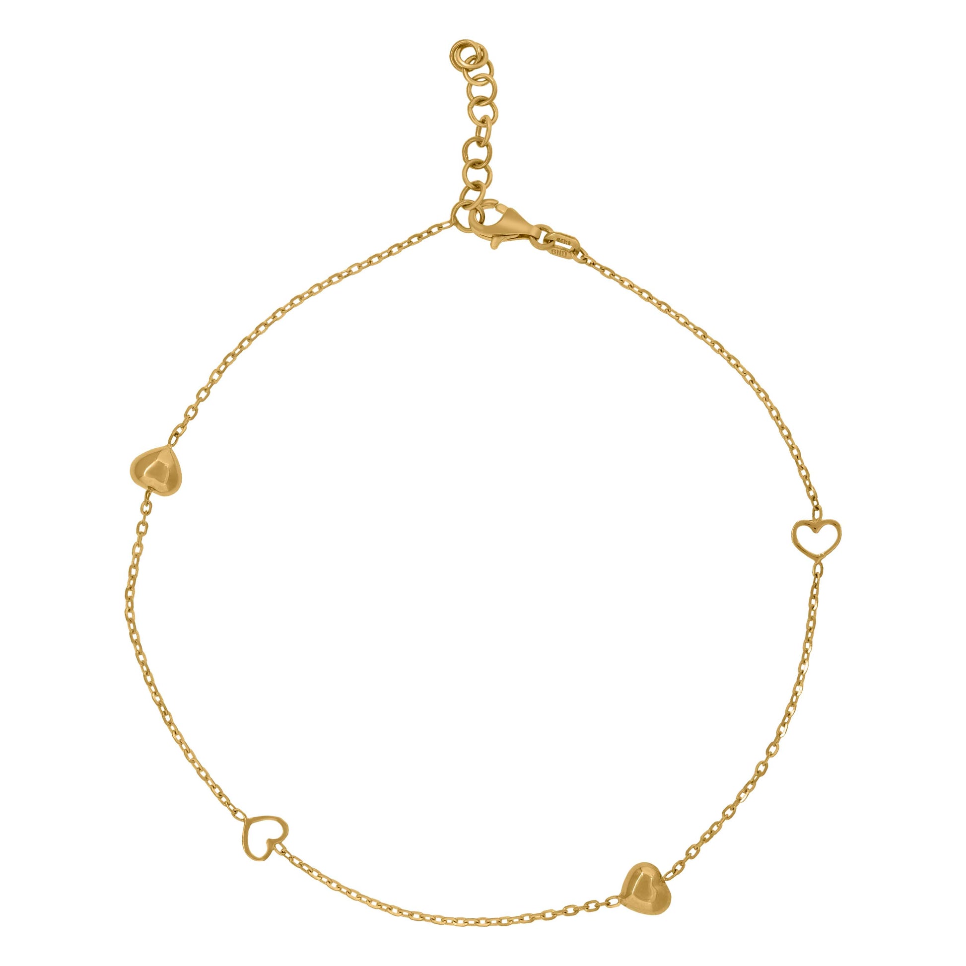 14Kt Yellow Gold Womens Polished Finish Heart Beaded Anklet