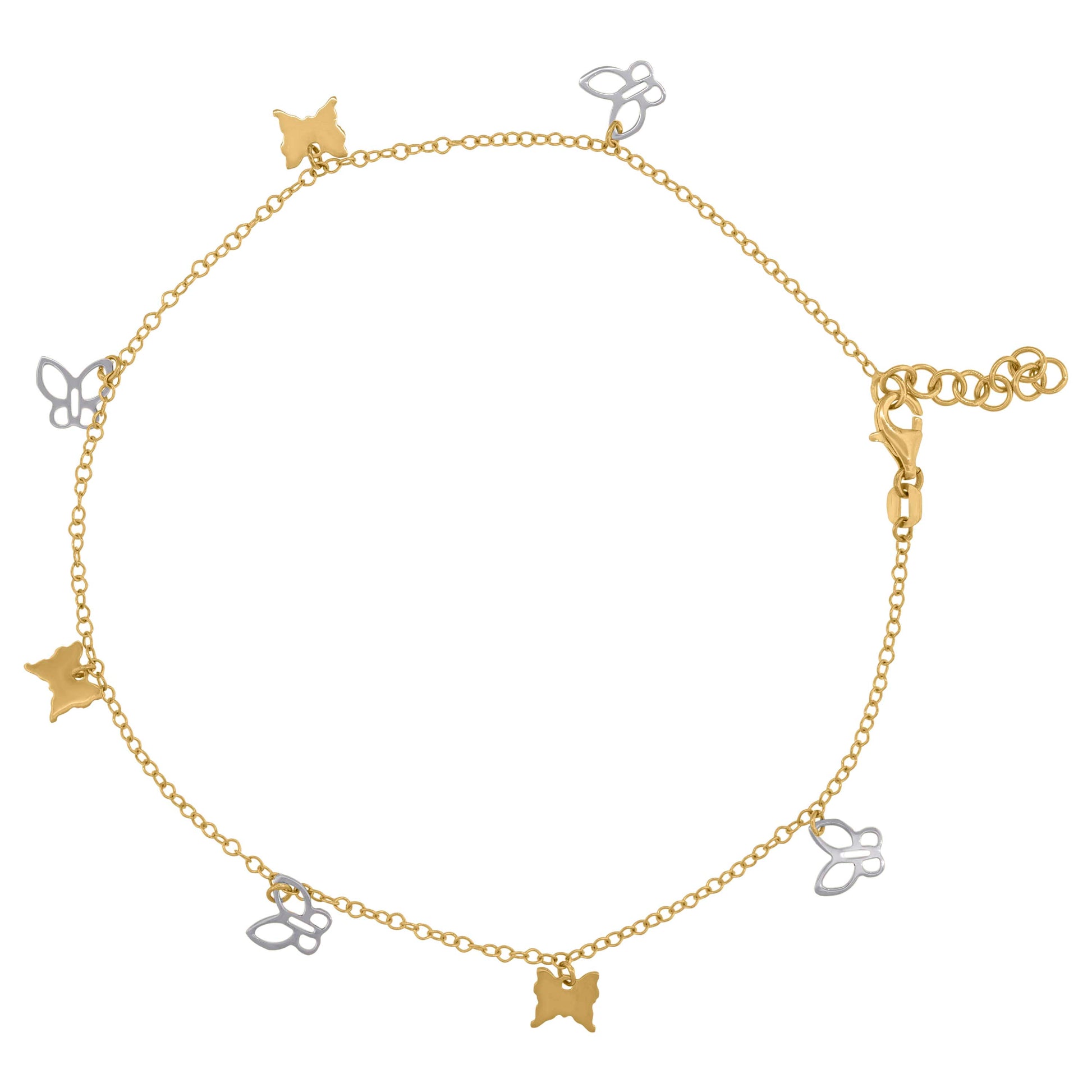 14Kt Two-Tone Gold Womens Polished Finish Butterfly Charm Anklet