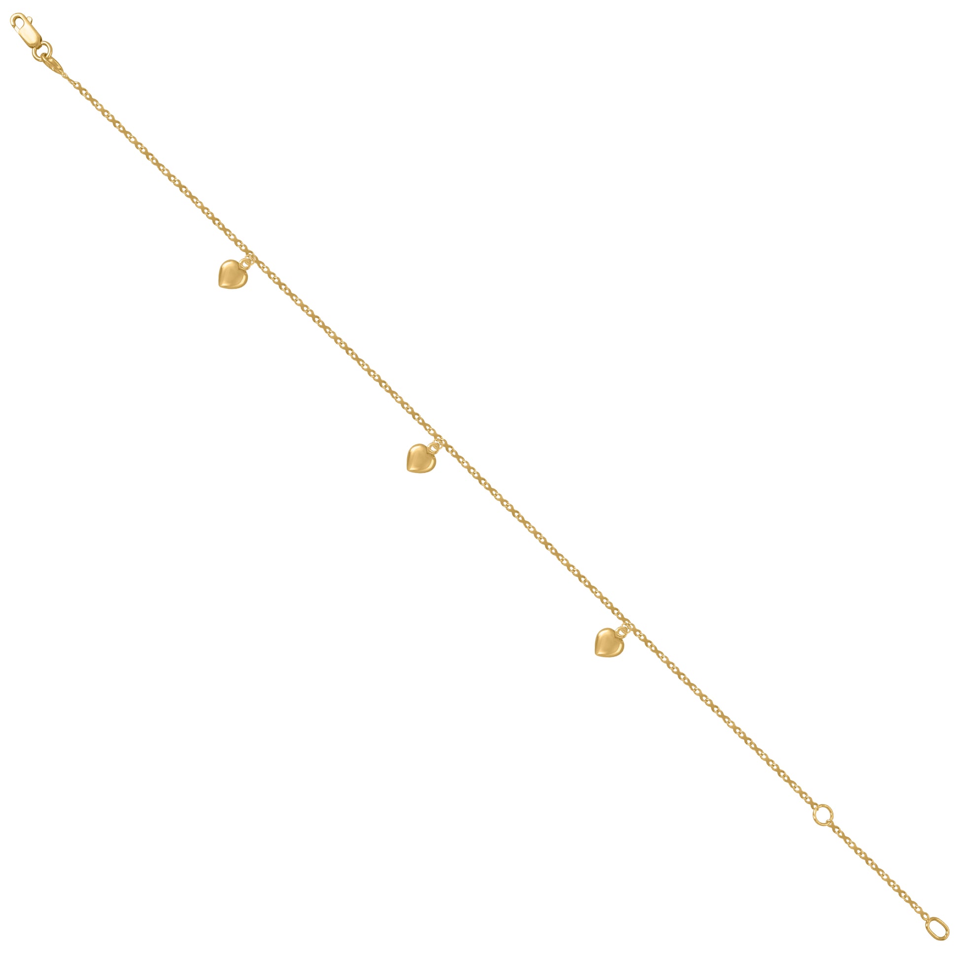 14Kt Yellow Gold Womens Heart Charm Anklet