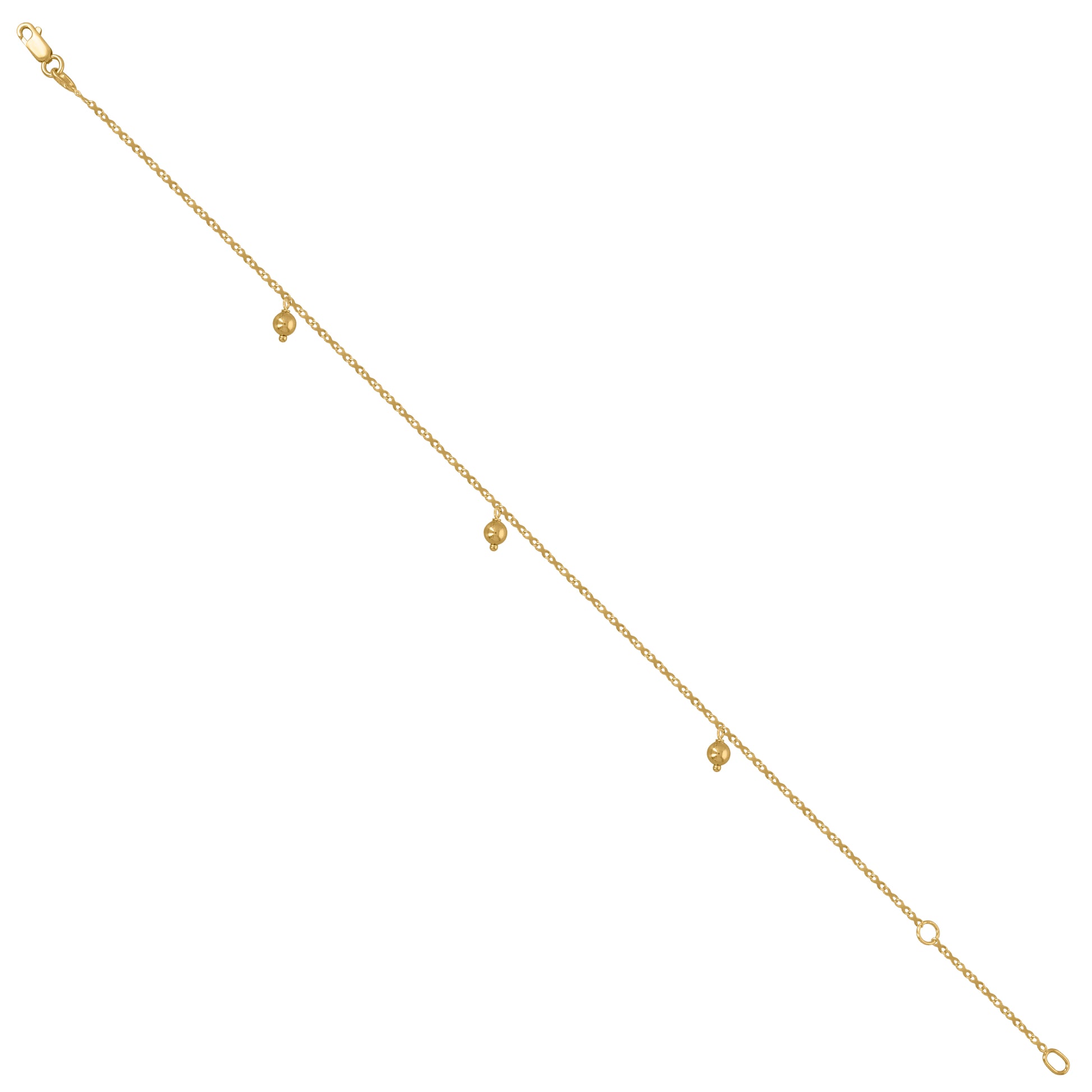 14Kt Yellow Gold Womens Beaded Charm Anklet