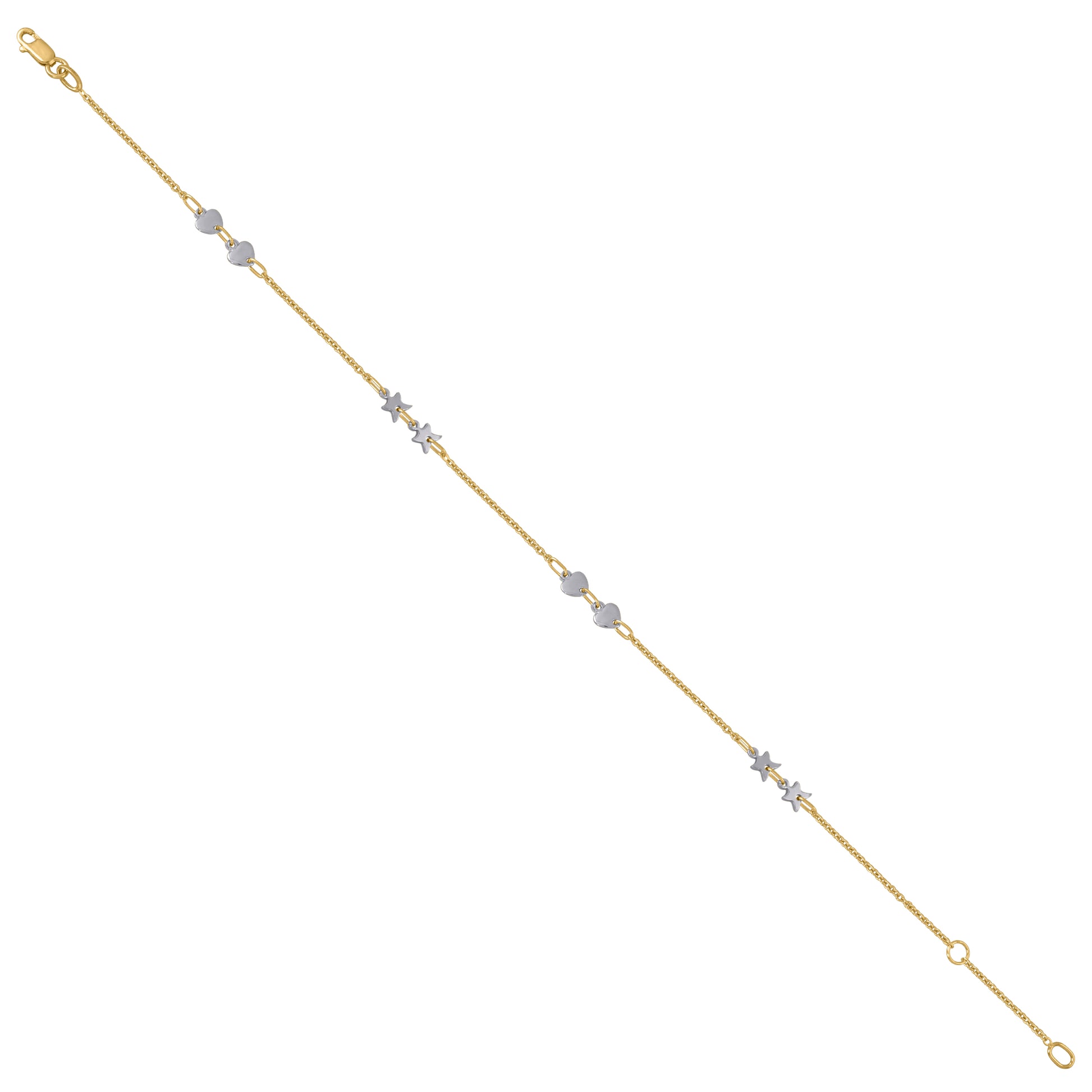 14Kt Two-Tone Gold Womens Hearts & Stars Chain Anklet