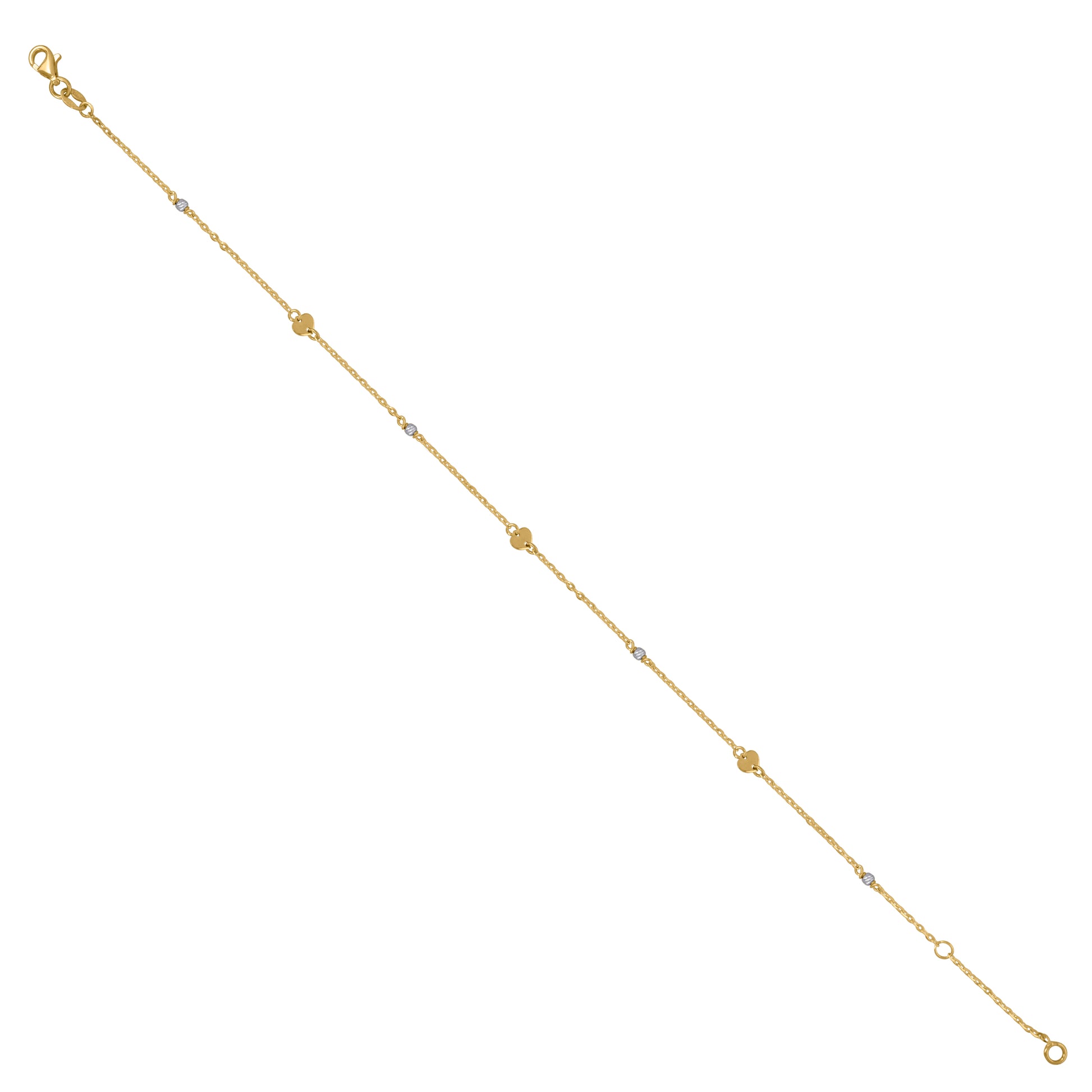 14Kt Two-Tone Gold Womens Hearts Chain Anklet