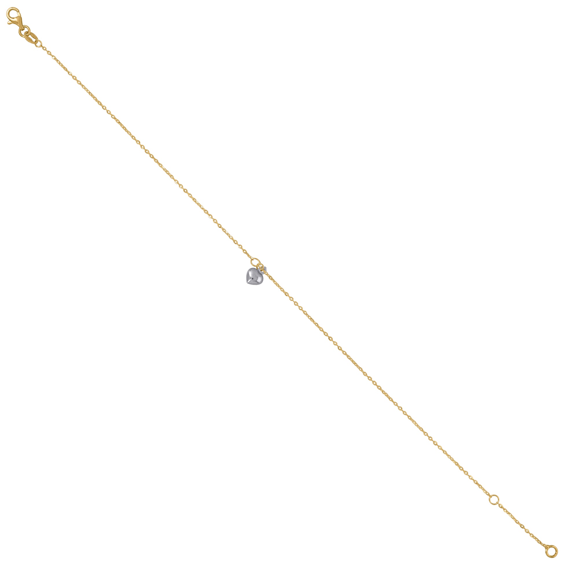 14Kt Two-Tone Gold Womens Heart Charm Anklet