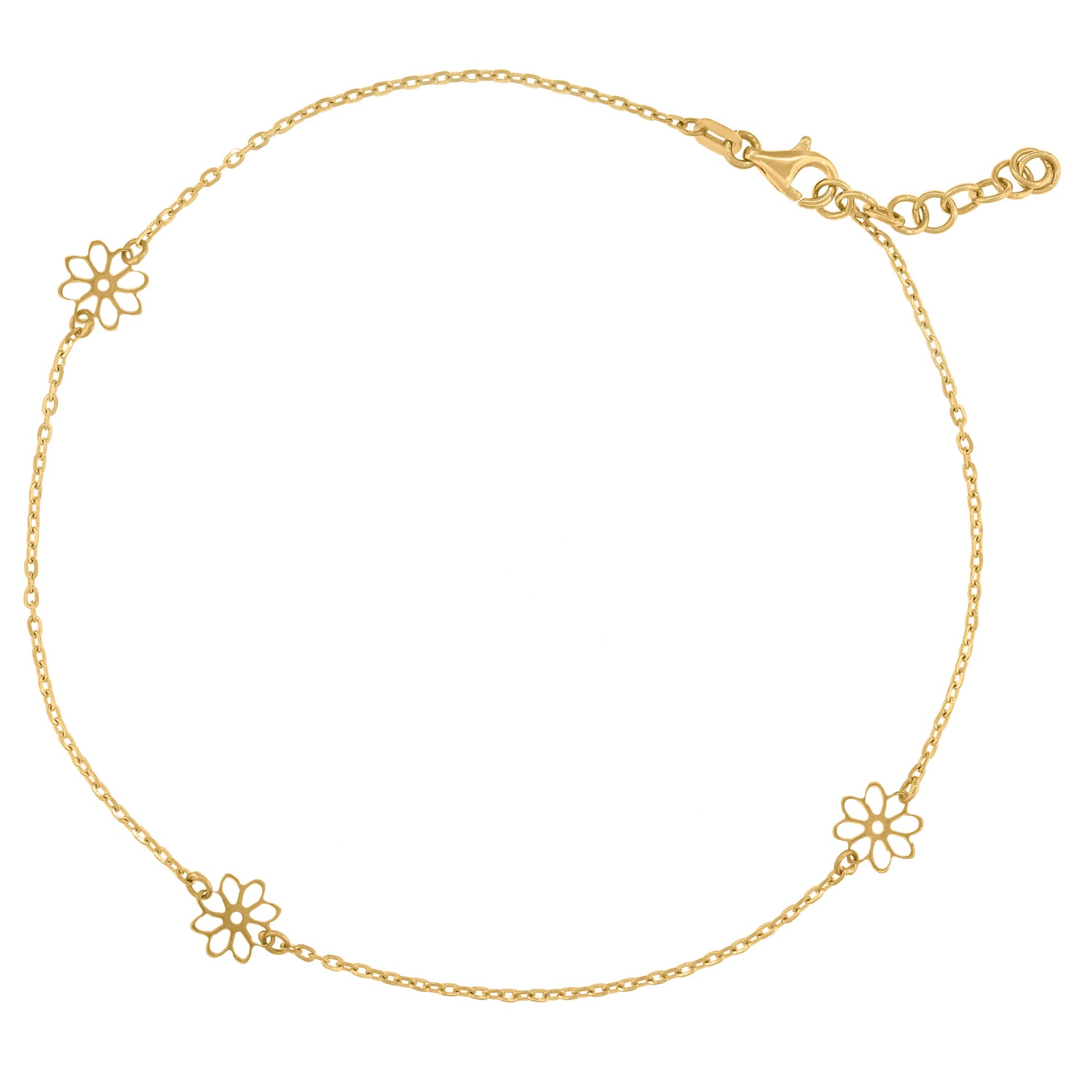 14Kt Yellow Gold Womens Polished Finish Flower Anklet
