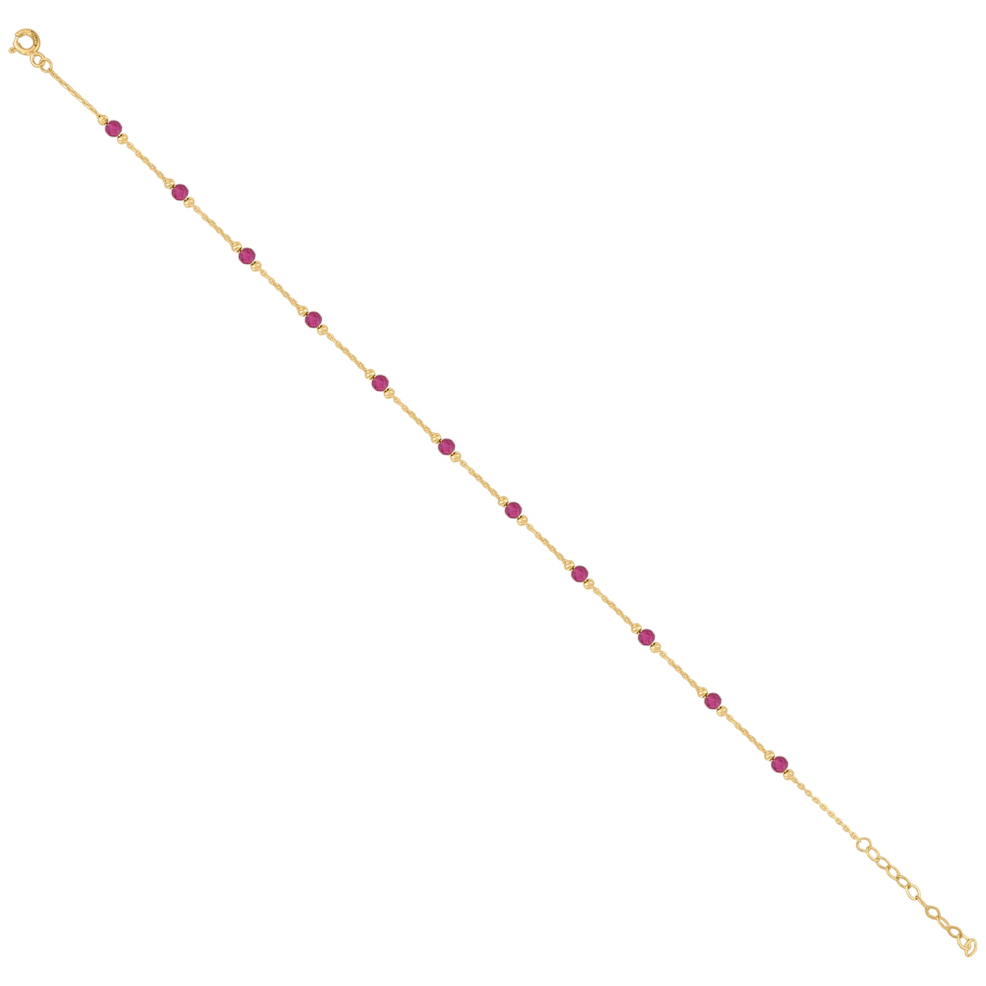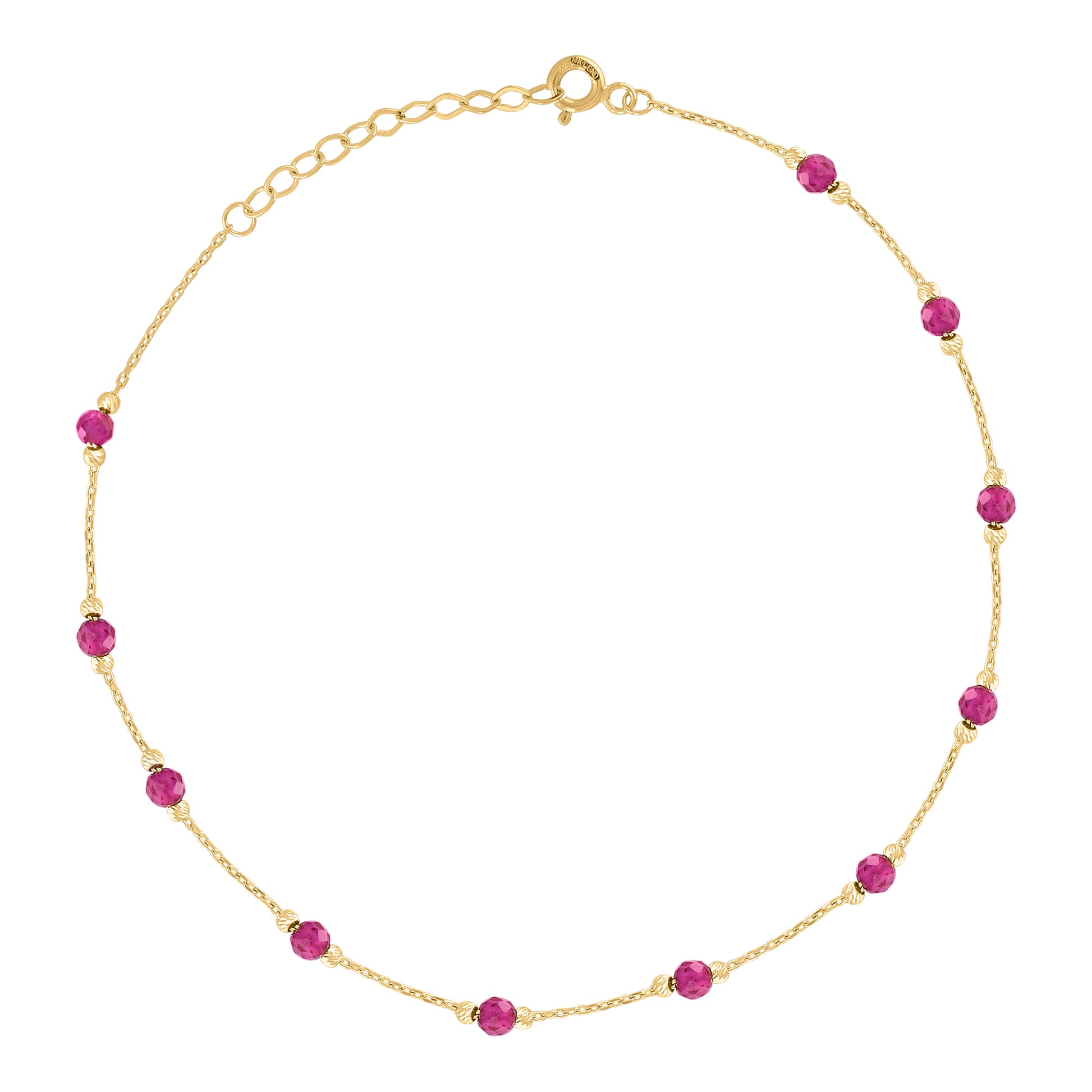 14Kt Yellow Gold Womens Pink Cubic Zirconia Chain Anklet Size 10 Inches
